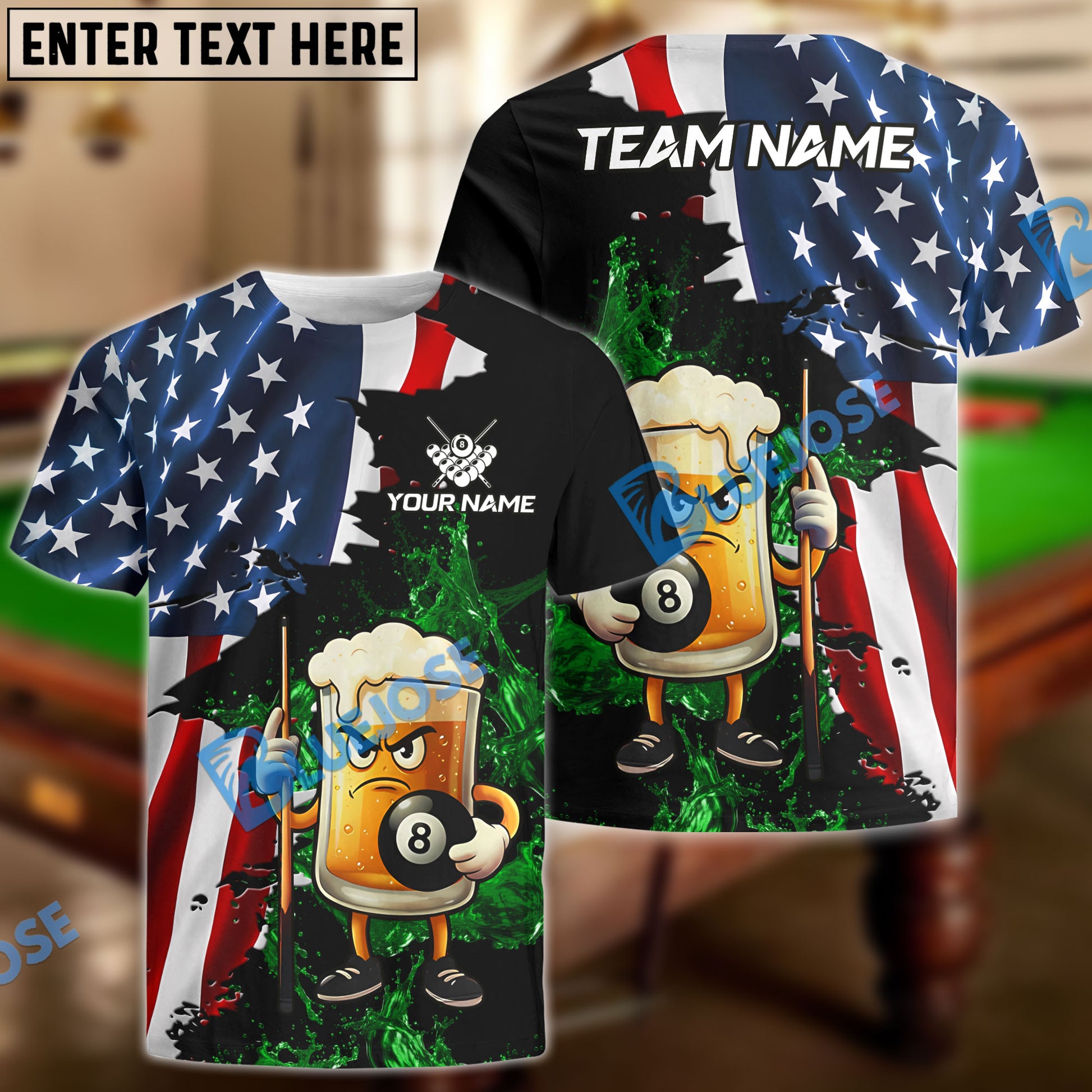 BlueJose Billiards Ball 8 Grumpy Beer Mug American Flag Customized Name, Team Name 3D Shirt (4 Colors)