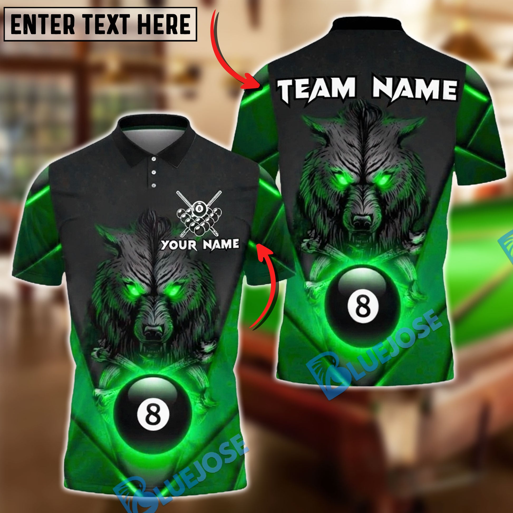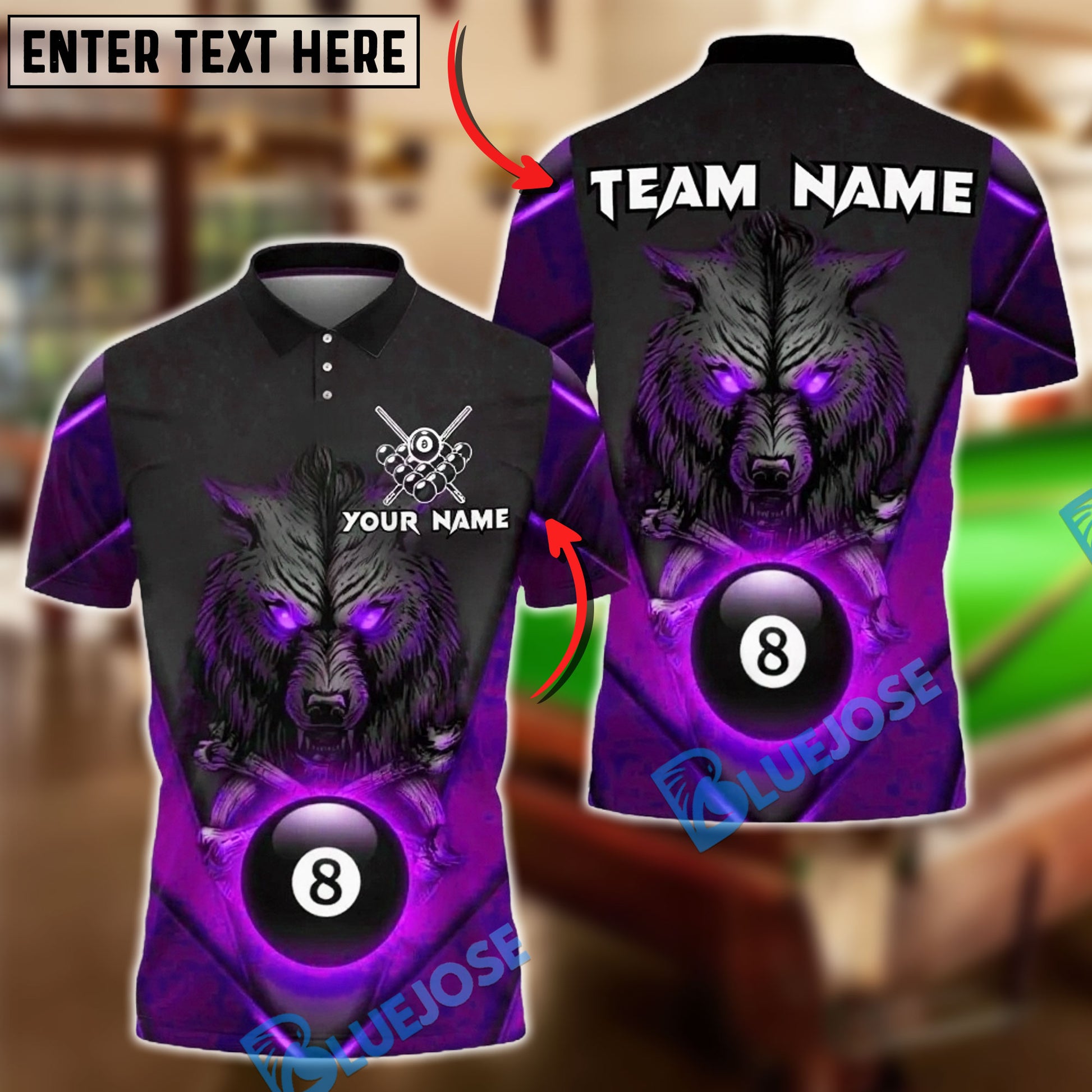 BlueJose Billiards Ball 8 Pool Wolf Flame Personalized Name, Team Name Unisex Shirt (4 Colors)