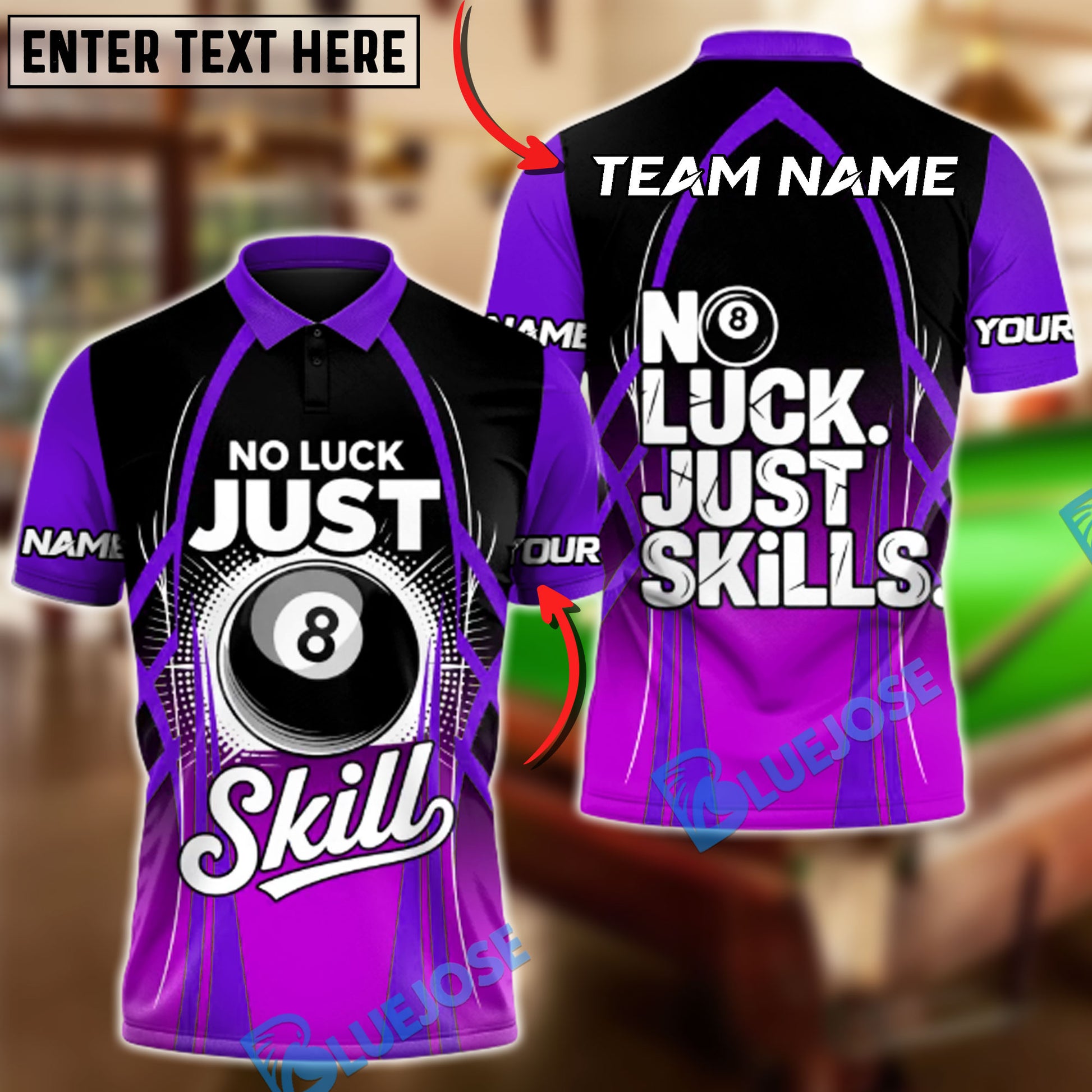 BlueJose Billiards Ball 8 Precision No Luck Customized Name, Team Name 3D Shirt (4 Colors)