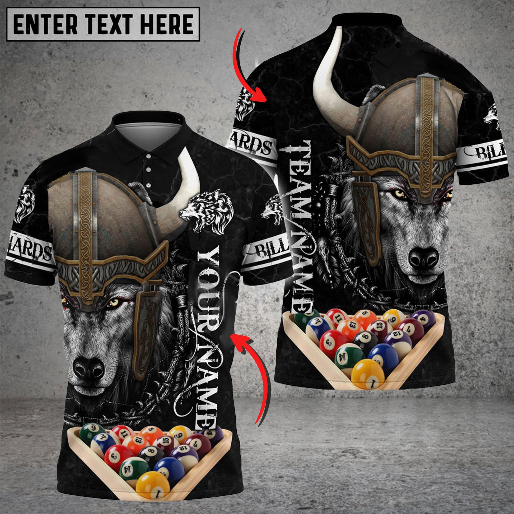 BlueJose Billiards Ball 8 Rack Wolf Viking Warrior Customized Name 3D Shirt (4 Colors)