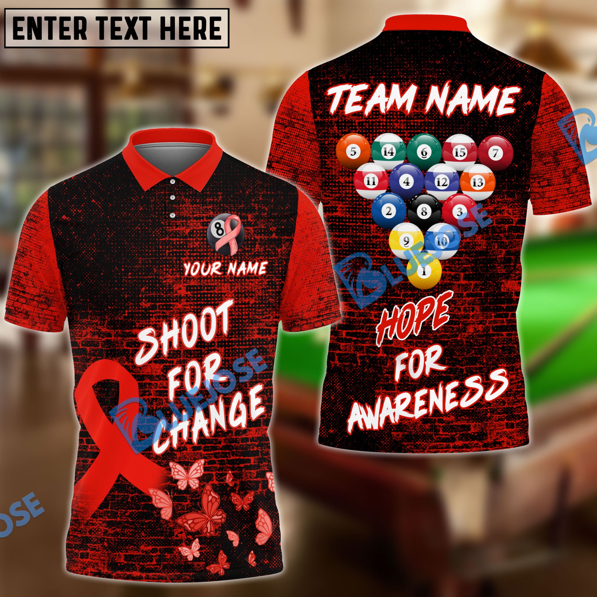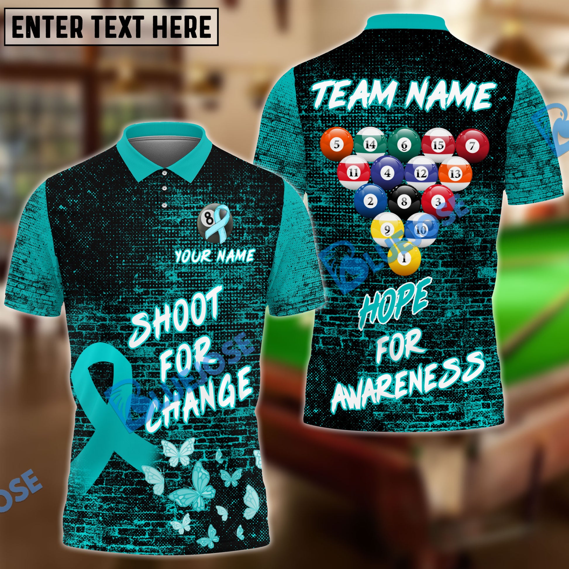 BlueJose Billiards Ball 8 Shoot For Change Hope For Awareness Personalized Name, Team Name Unisex Shirt (4 Colors)