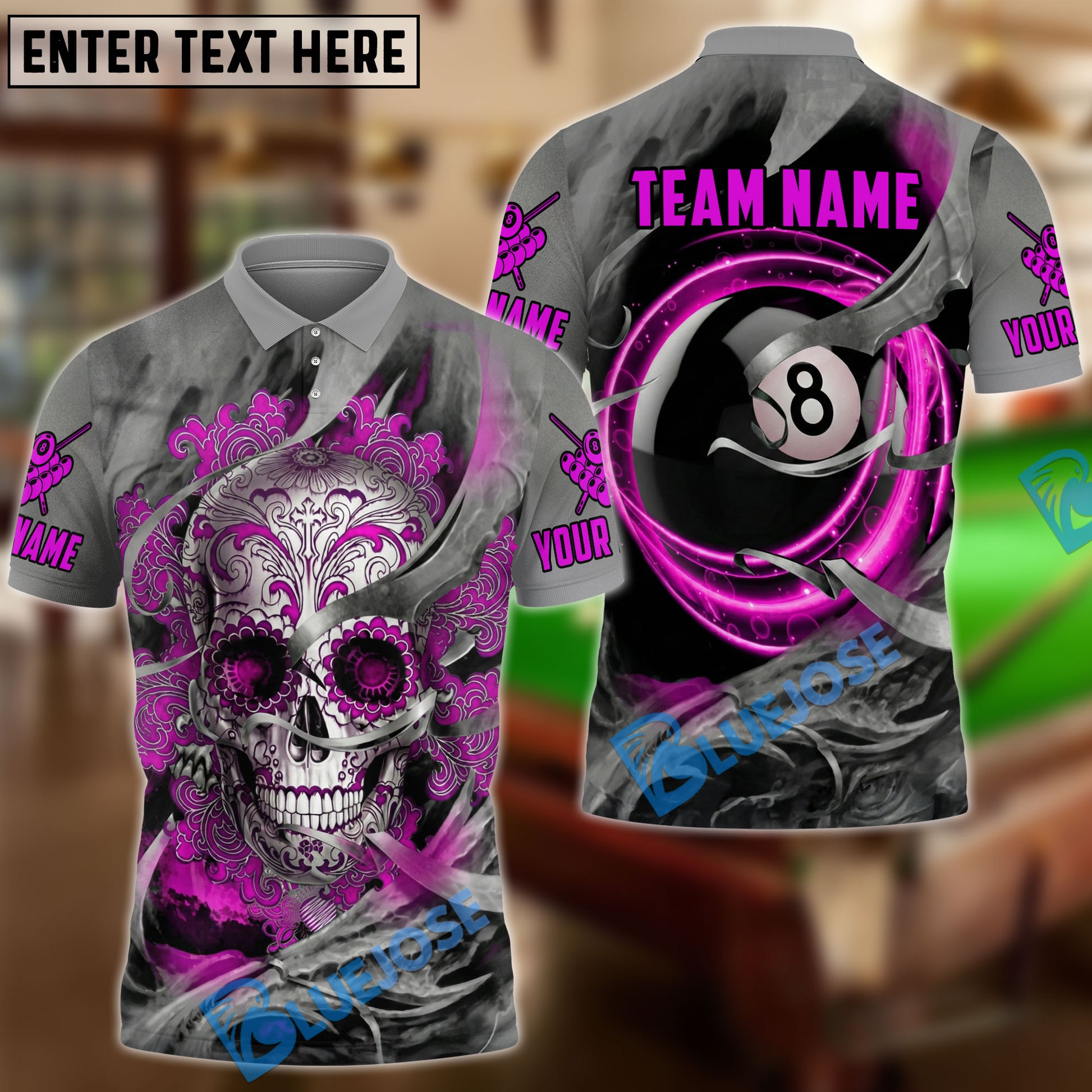 BlueJose Billiards Ball 8 Sugar Skull Personalized Name & Team Name Shirt (4 Colors)