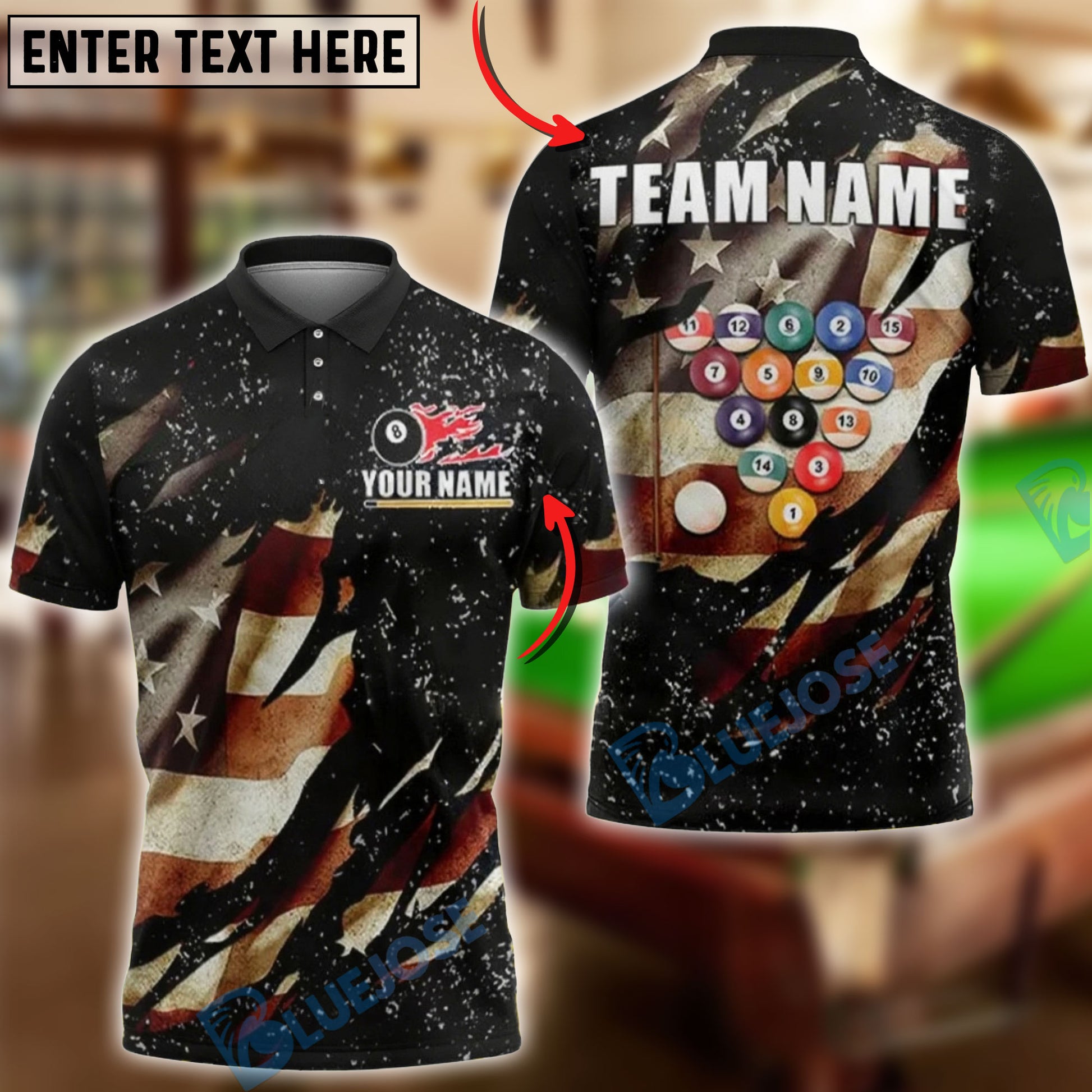BlueJose Billiards Ball 8 Vintage American Flag Pool Balls Personalized Shirt