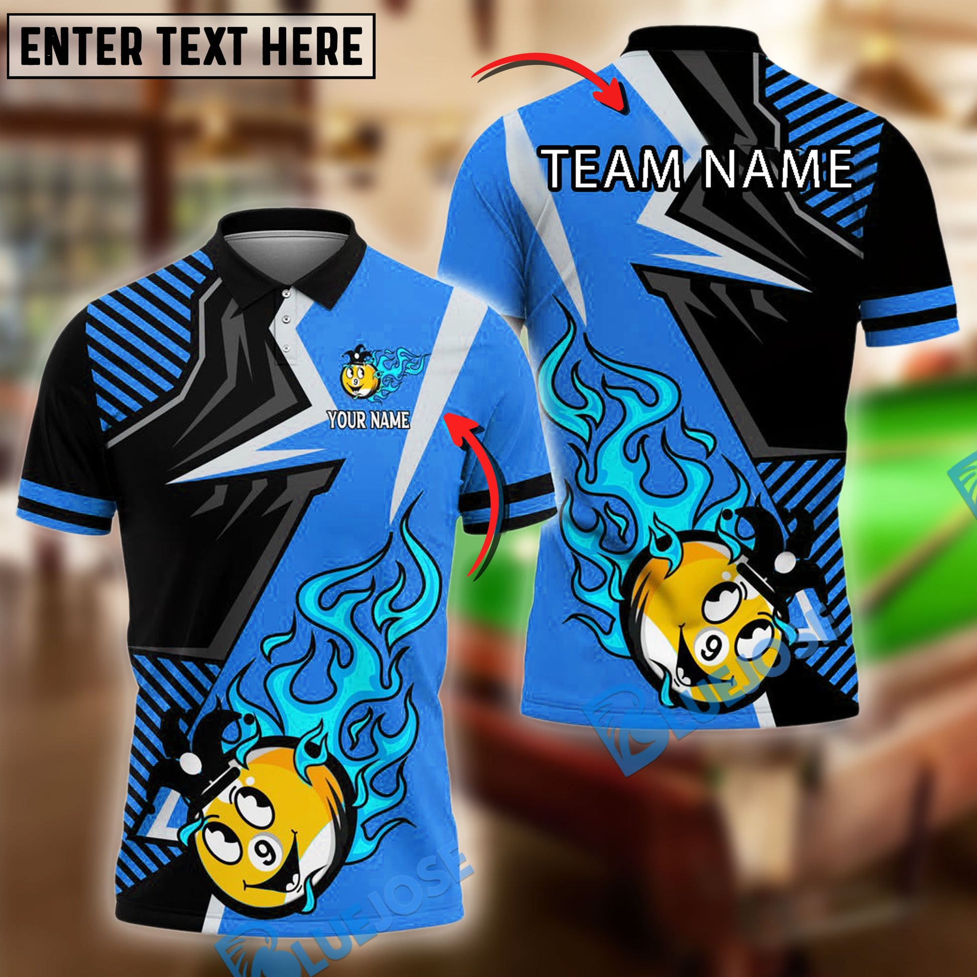 BlueJose Billiards Ball 9 Pool Funny Blazing Strike Personalized Name & Team Name Shirt (4 Colors)