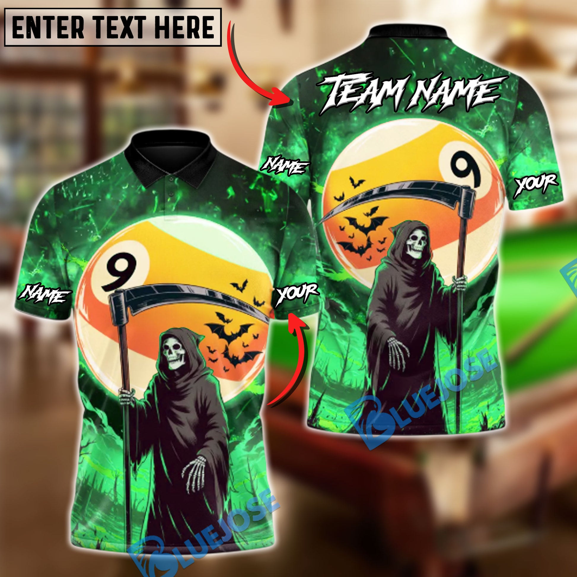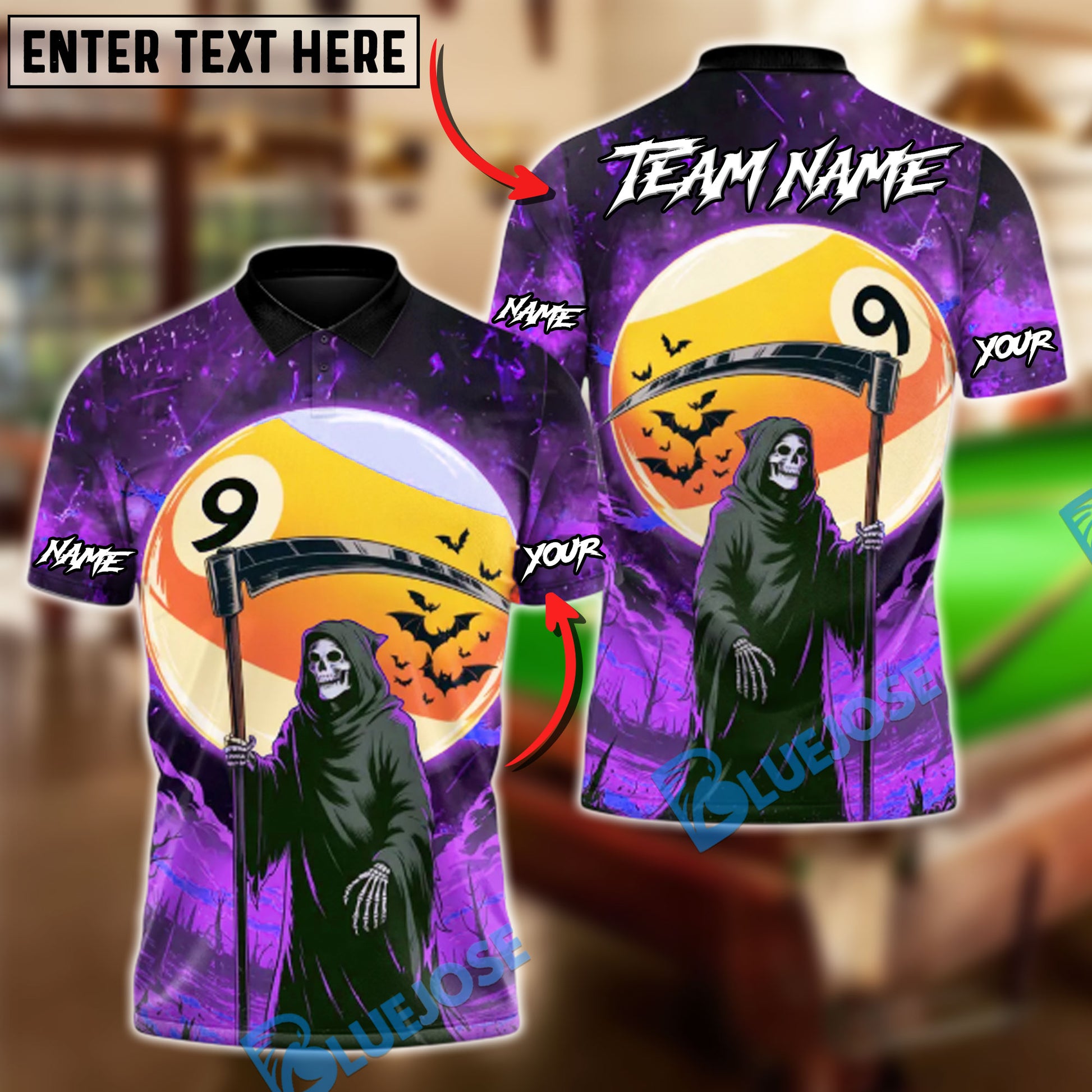 BlueJose Billiards Ball 9 Skull Reaper Moon Personalized Name, Team Name Unisex Shirt (4 Colors)