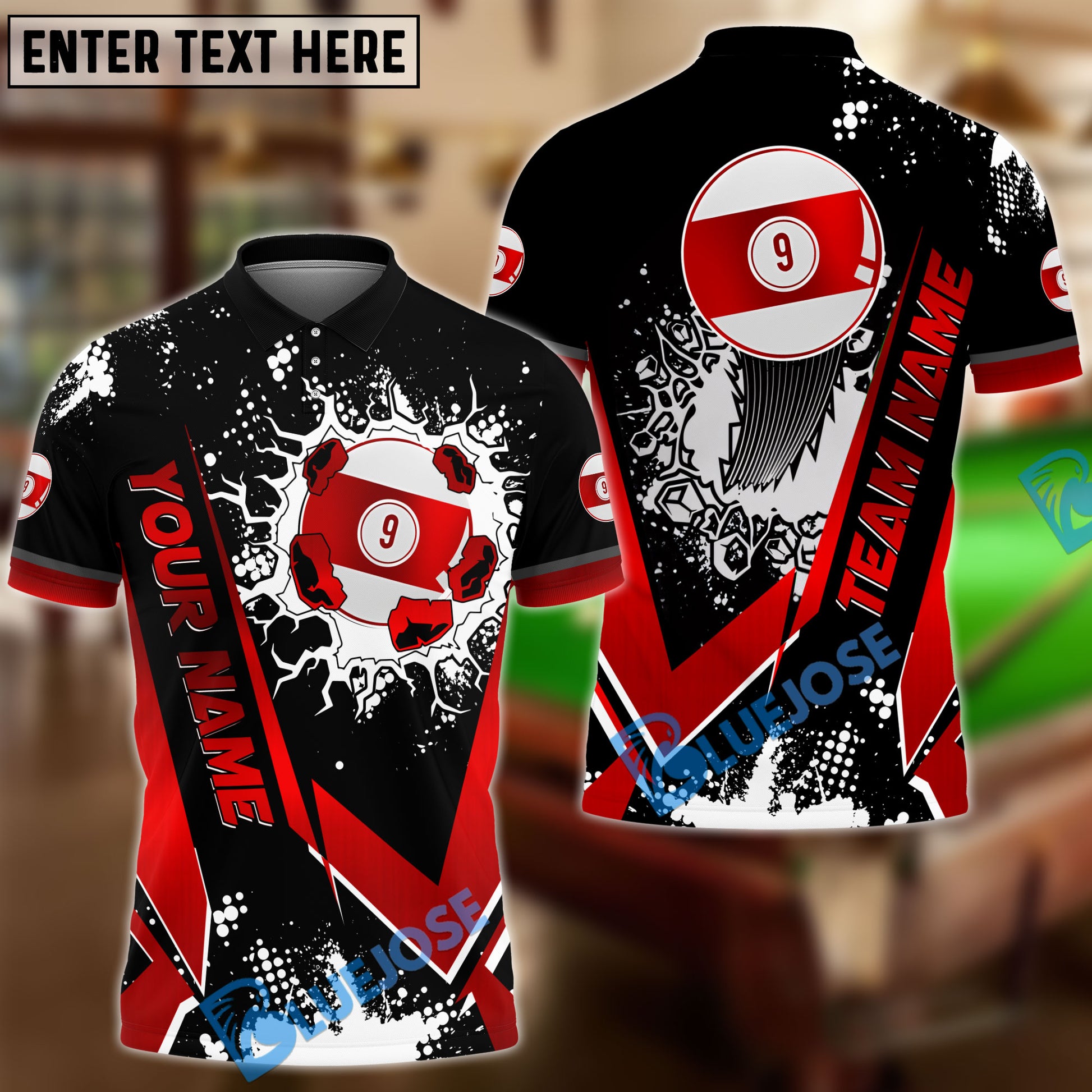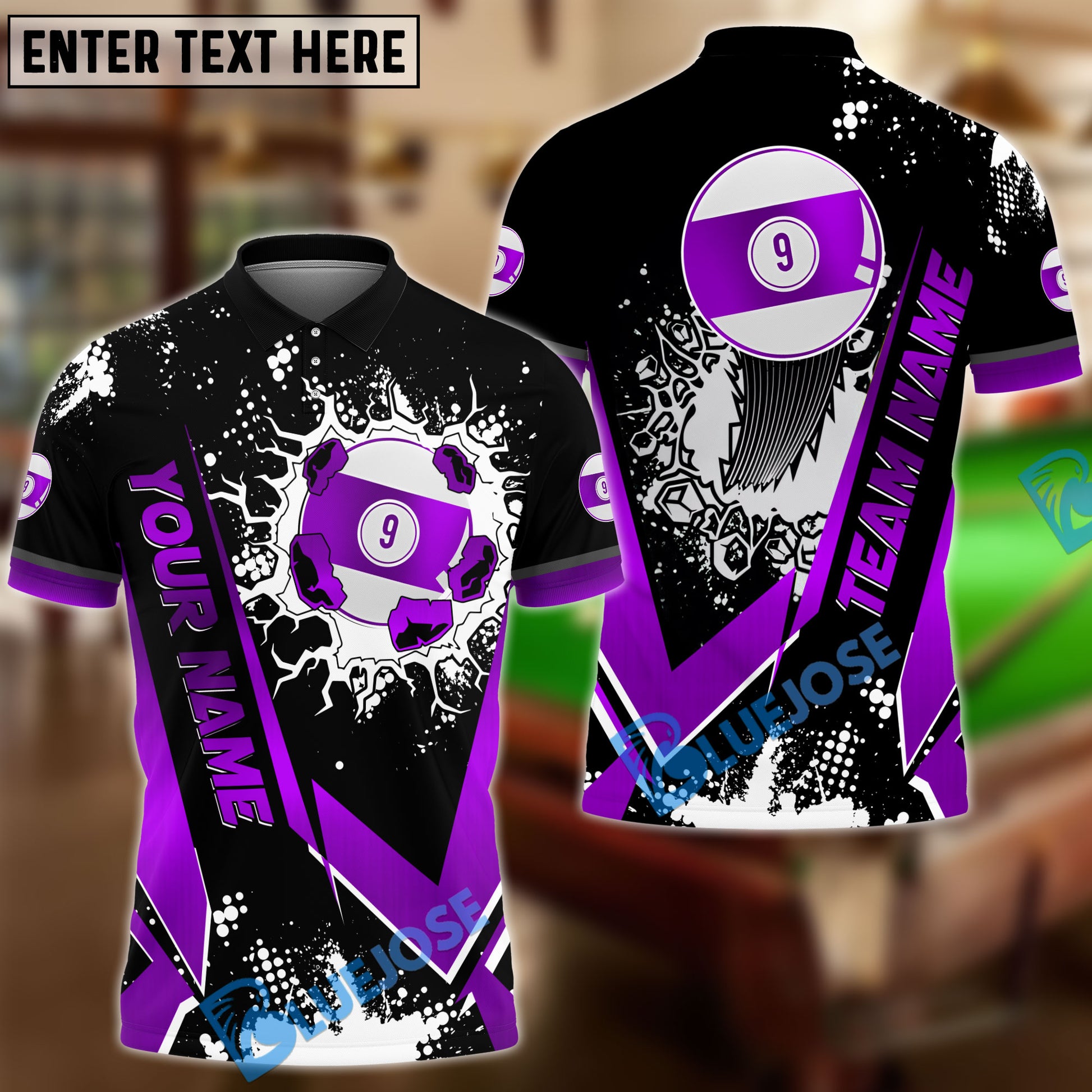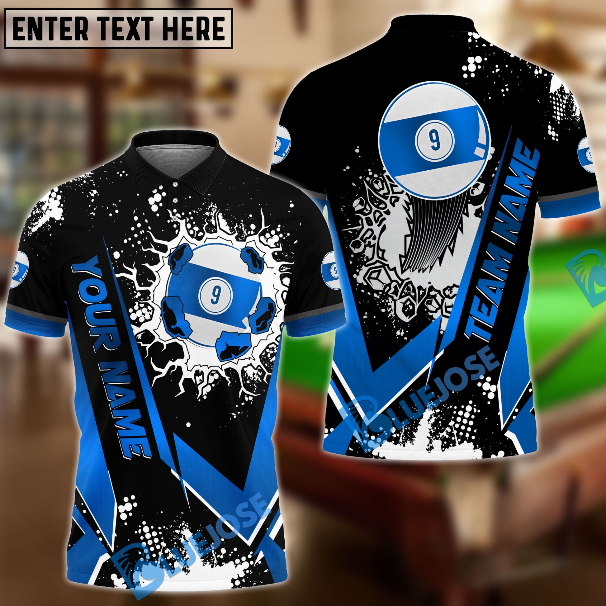 BlueJose Billiards Black Gold 9 Ball Design Personalized Name Shirt (4 Colors)