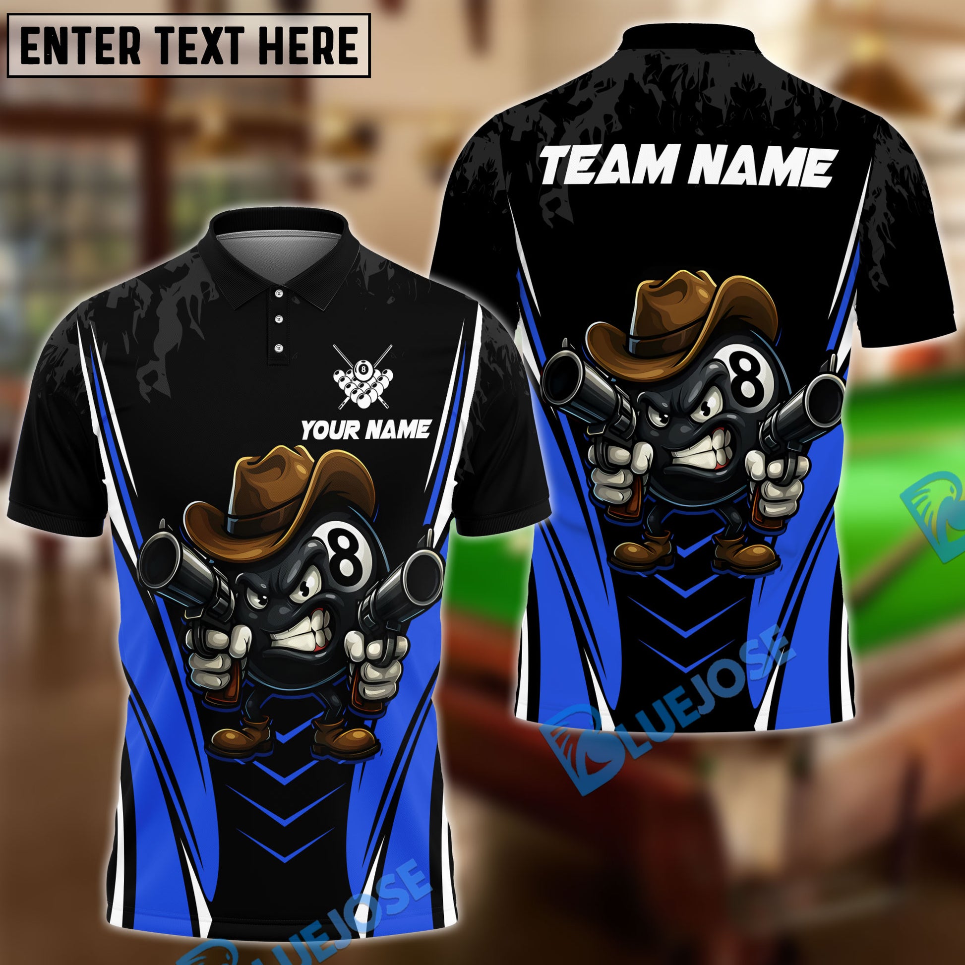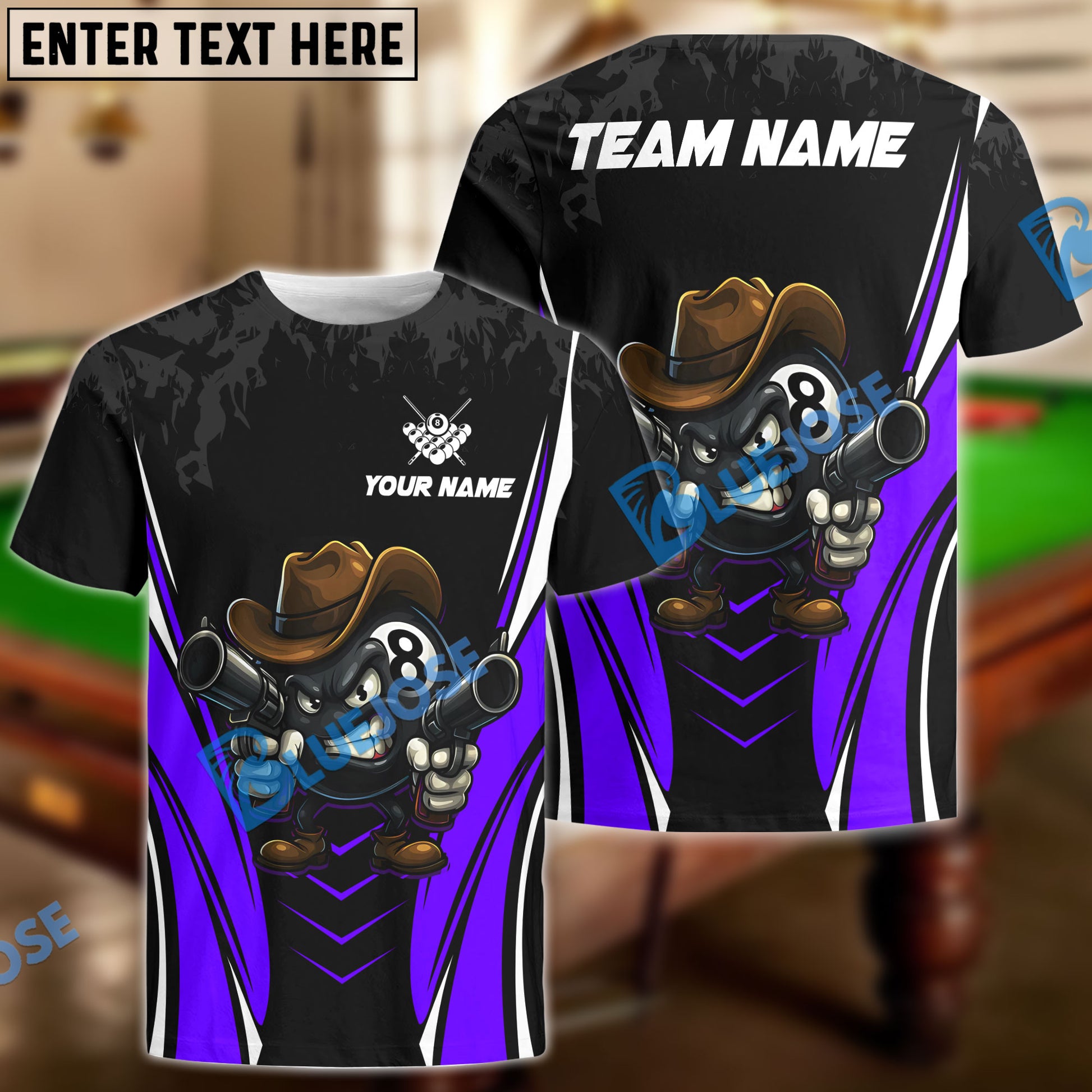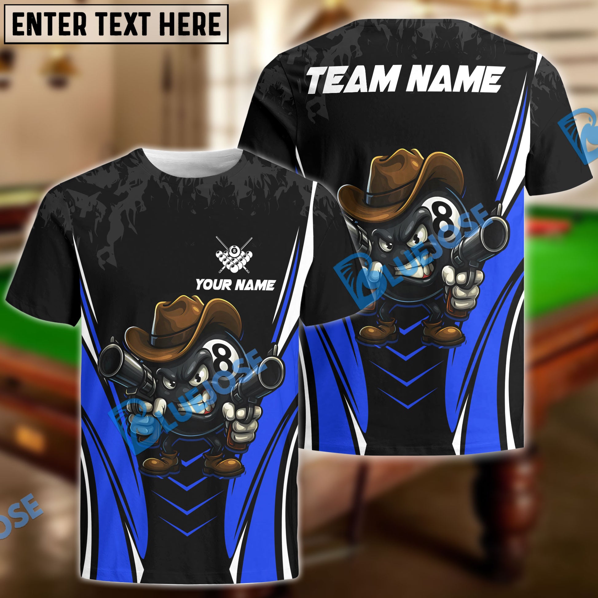 BlueJose Billiards Cowboy 8 Ball Cartoon Style Personalized Name Shirt (4 Colors)