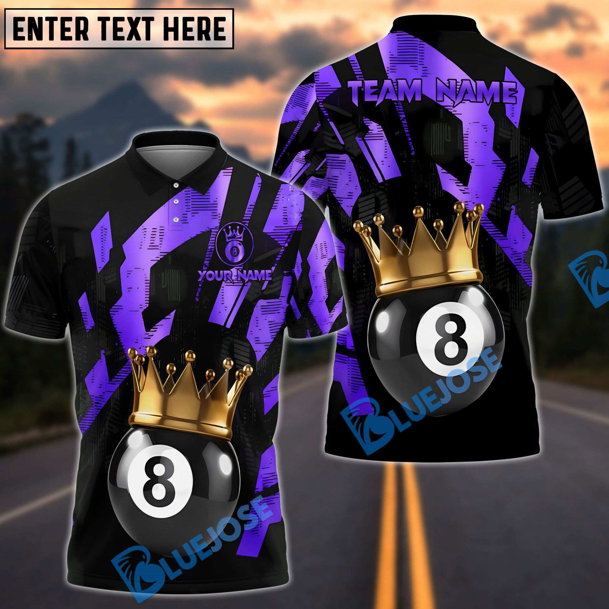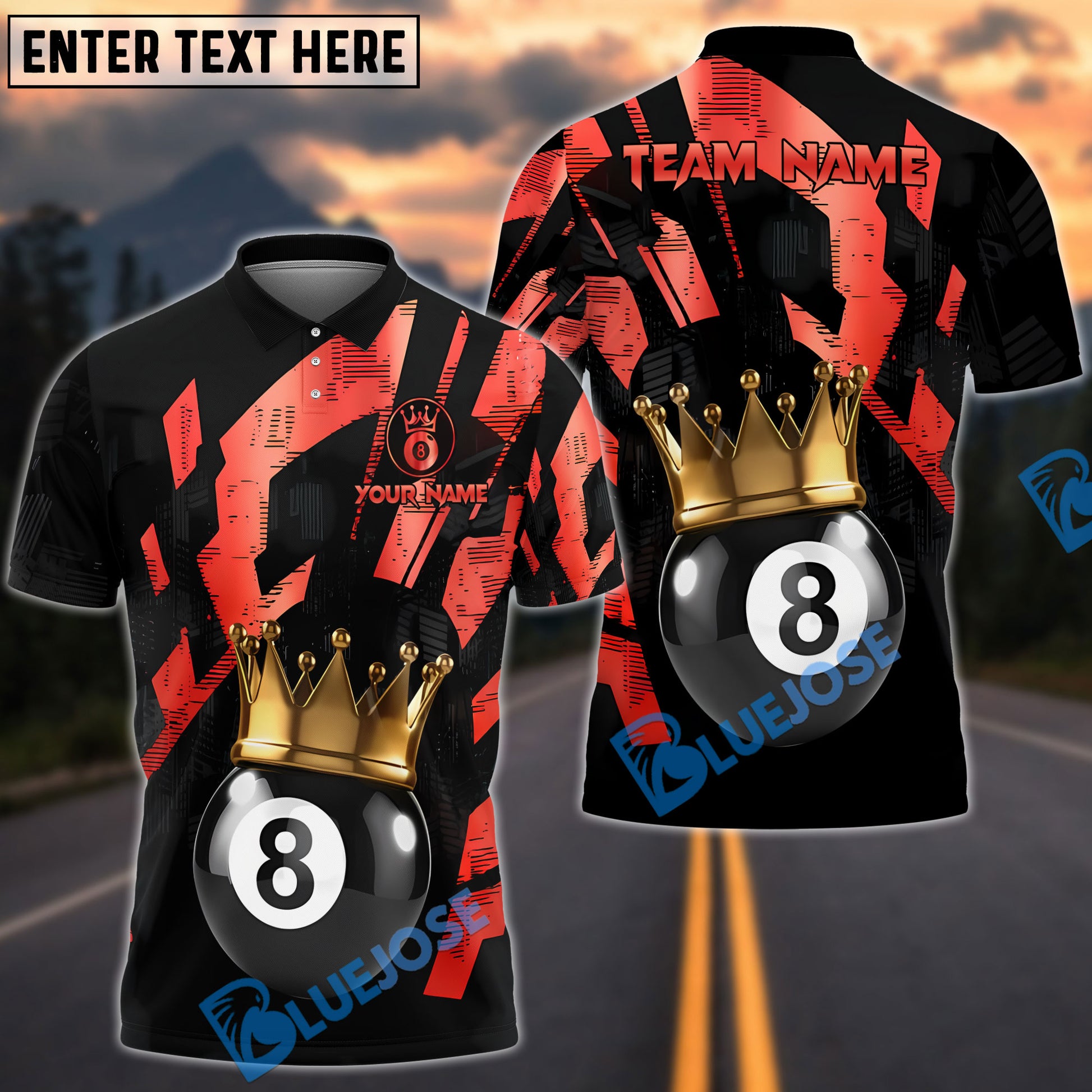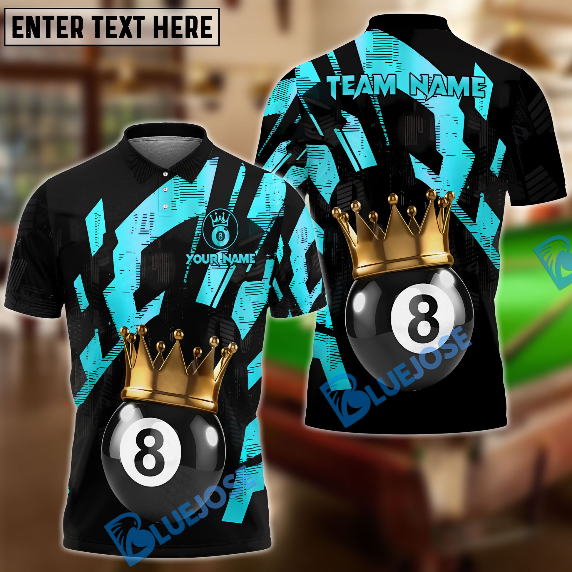 BlueJose Billiards Golden 8-Ball King Personalized Name, Team Name Shirt (6 Colors)