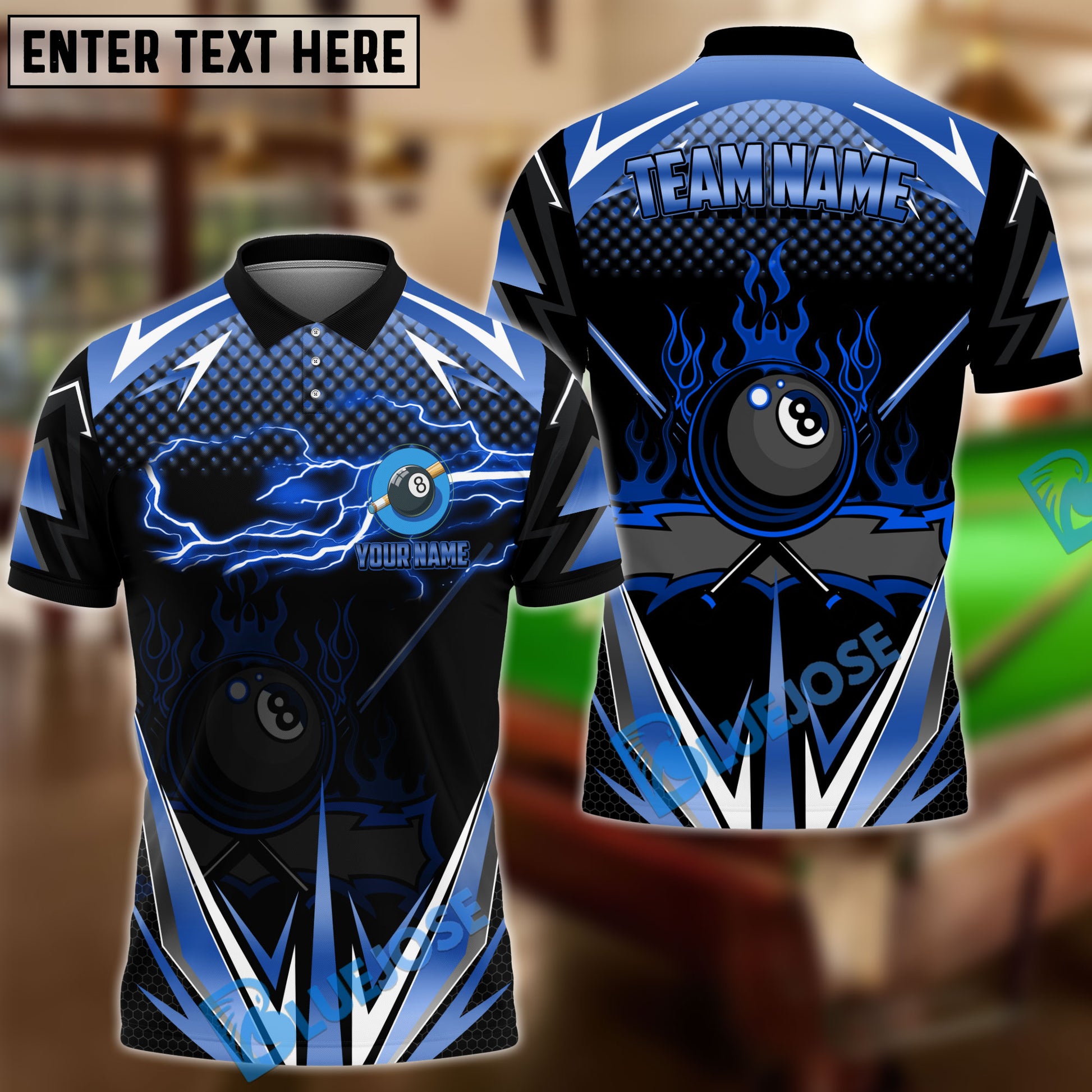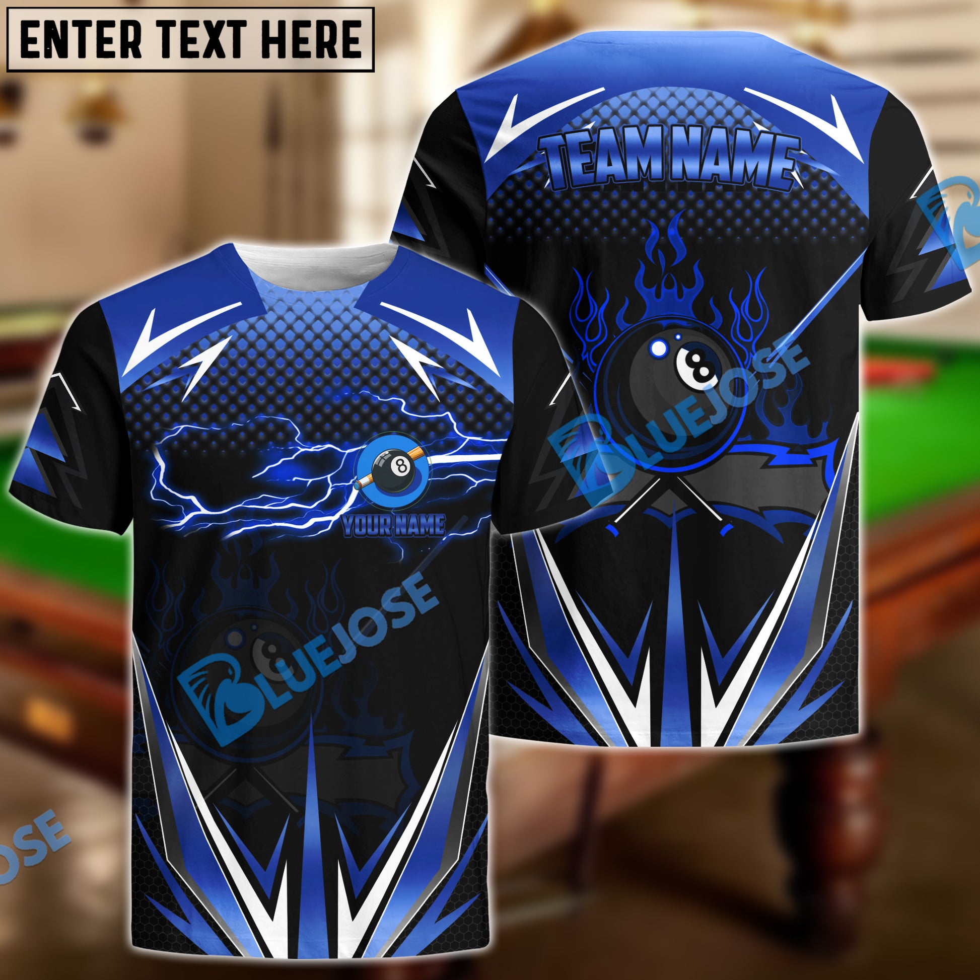 BlueJose Billiards Golden Inferno Power 8-Ball Pool Personalized Name Shirt (4 Colors)