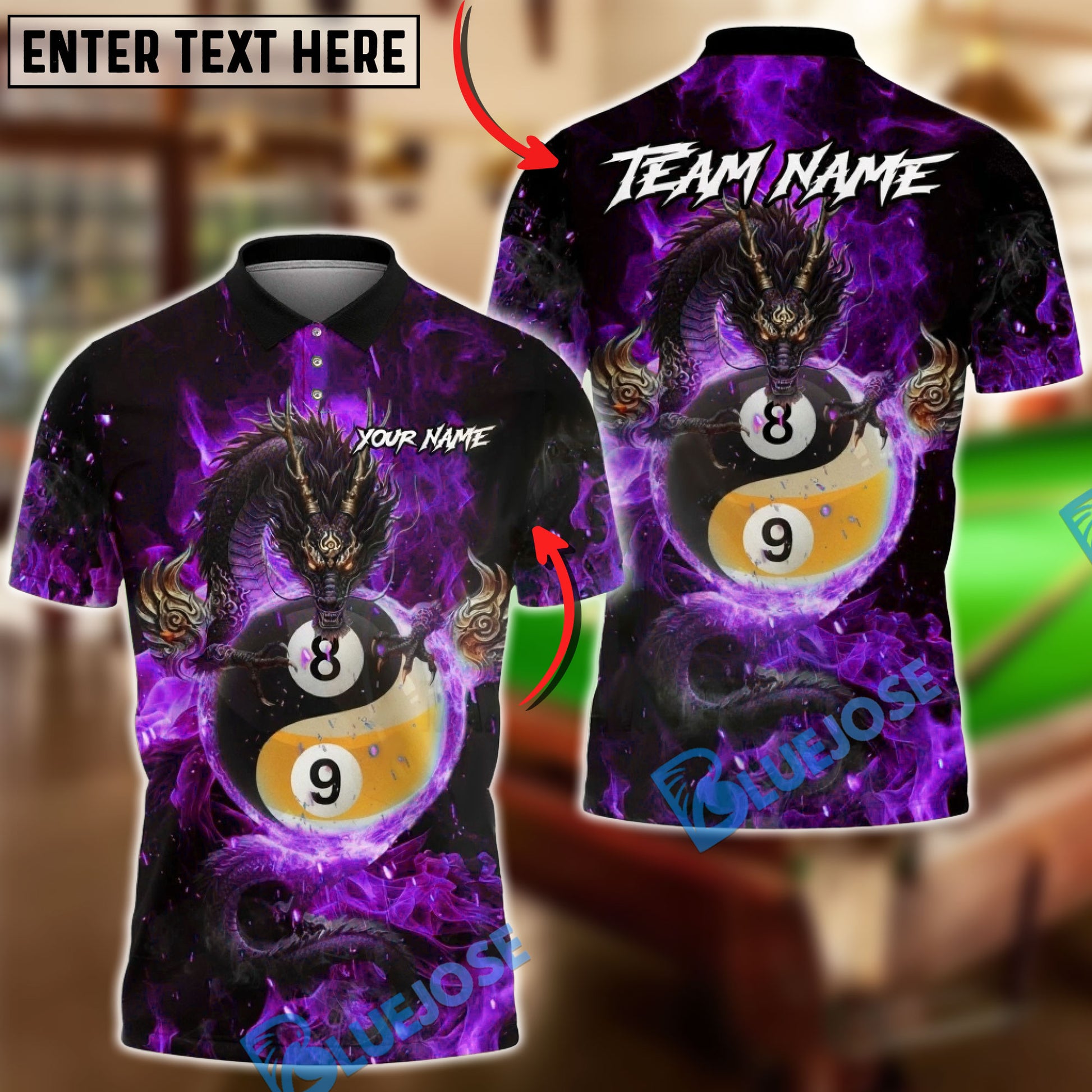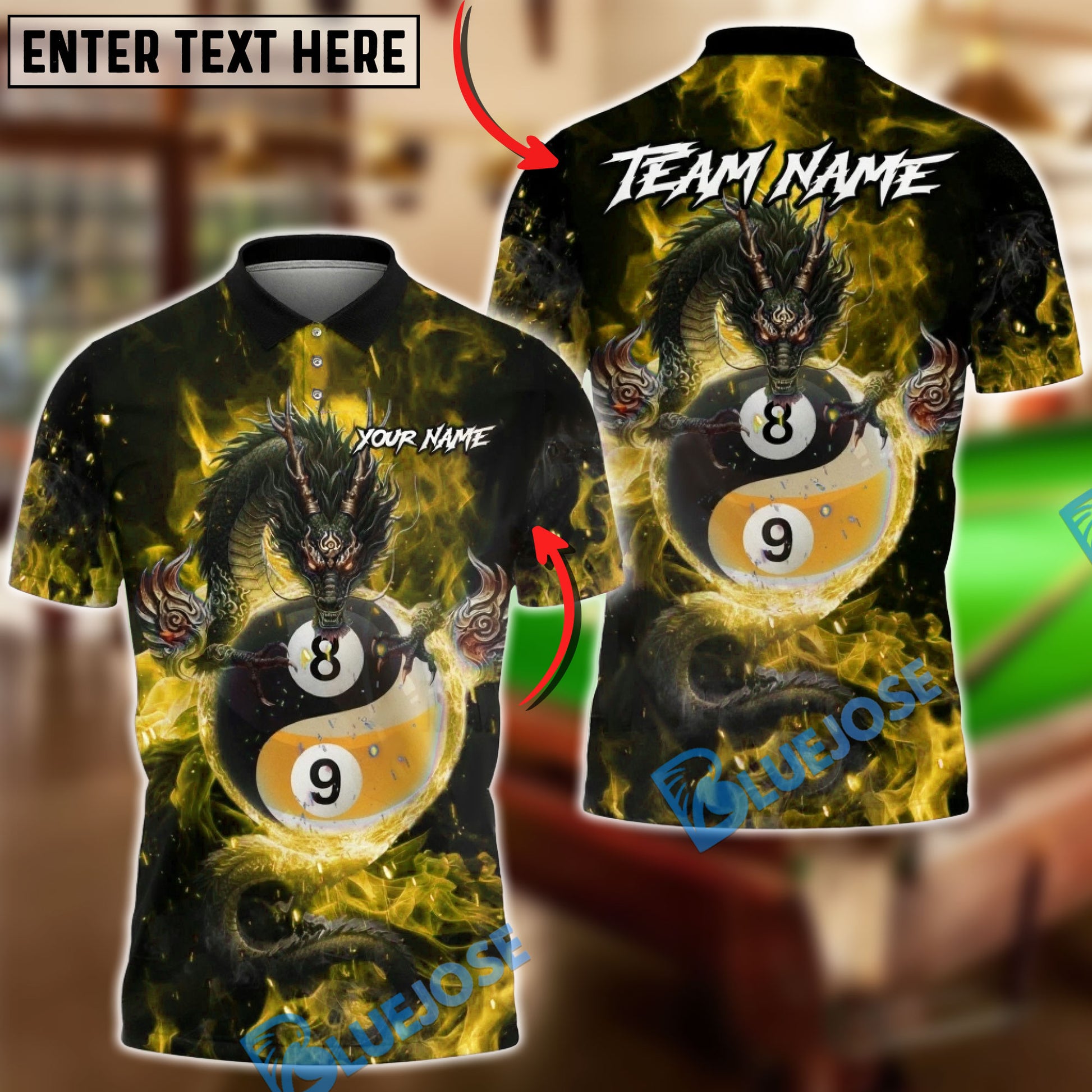 BlueJose Billiards Mystic Dragon Fire Ball 8 9 Yin And Yang Customized Name, Team Name 3D Shirt (6 Colors)