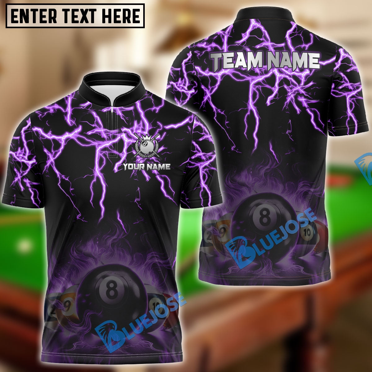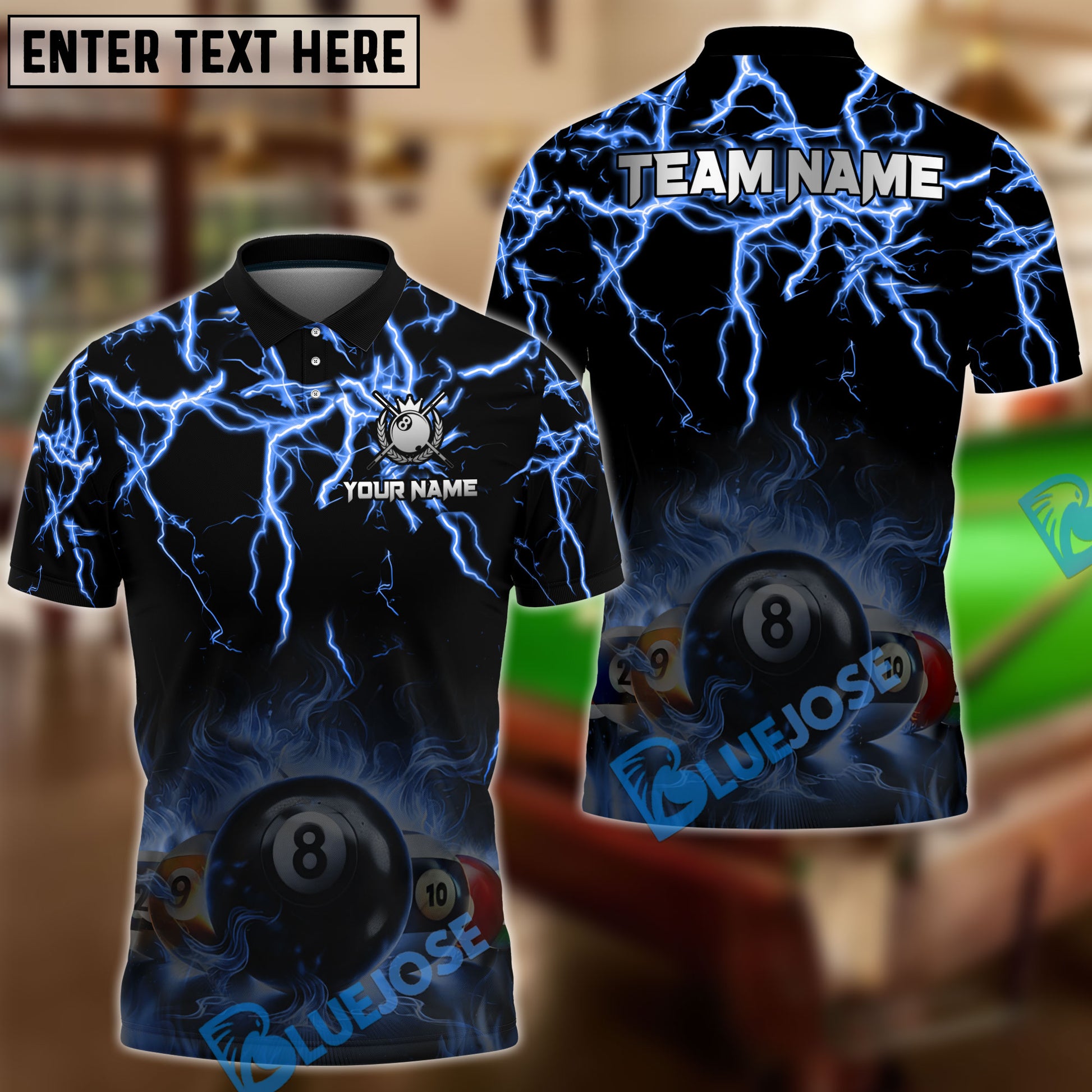 BlueJose Billiards Thunder Fire Ball Pattern Personalized Name, Team Name Unisex Shirt (4 Colors)