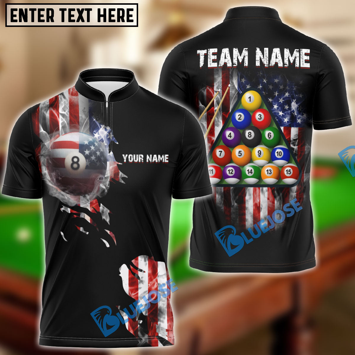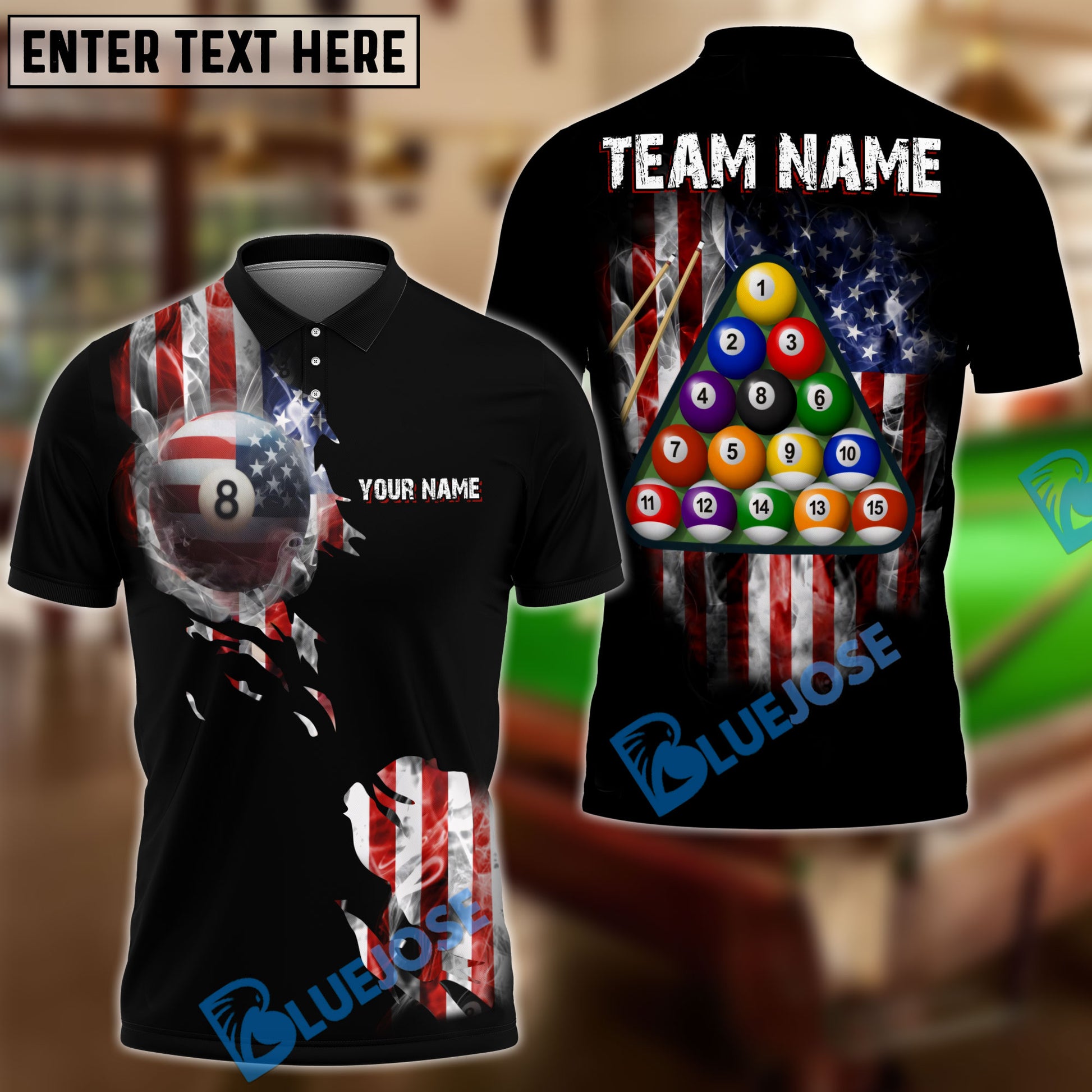 BlueJose Billiards USA Flag 8 Ball Stars And Stripes Style Personalized Shirt (2 Colors)