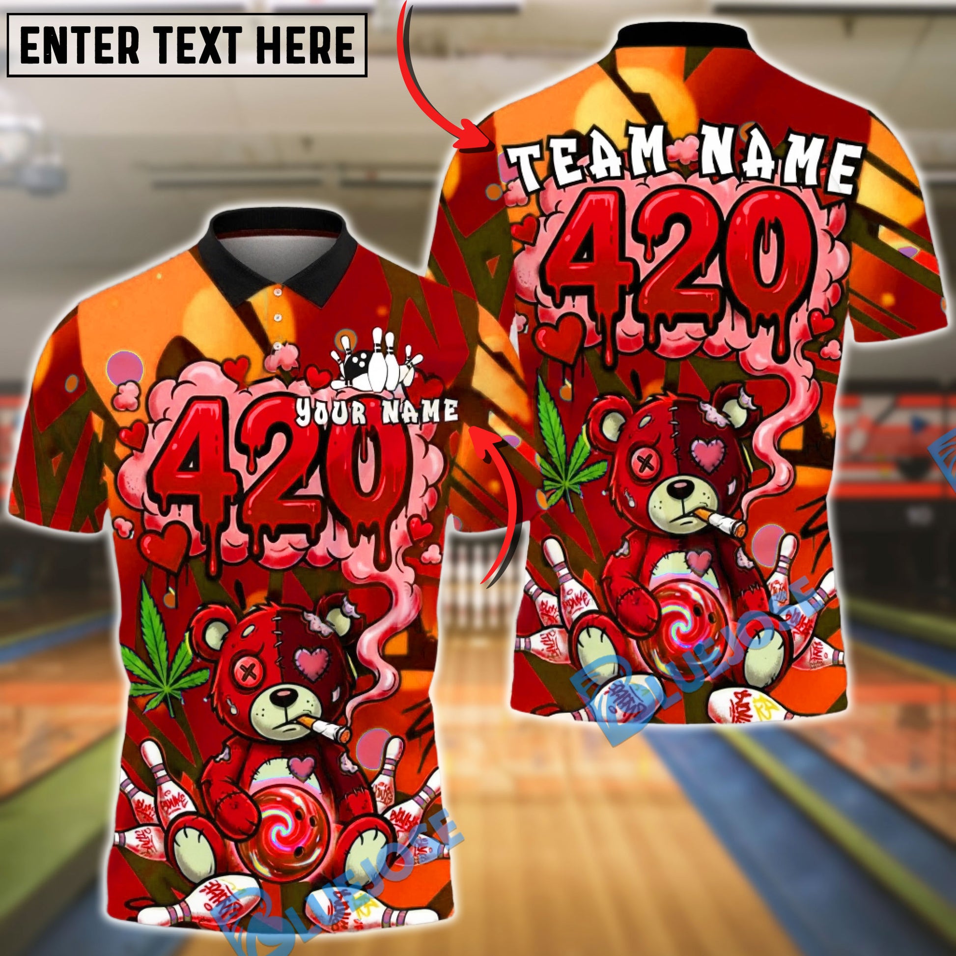 BlueJose Bowling 420 Bear Geometric Customized Name, Team Name 3D Shirt (4 Colors)