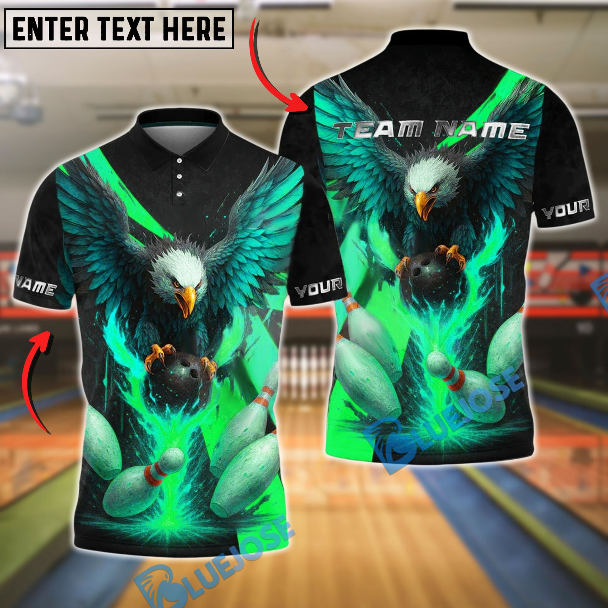 BlueJose Bowling And Pins American Bald Eagle Customized Name, Team Name 3D Shirt (4 Colors)