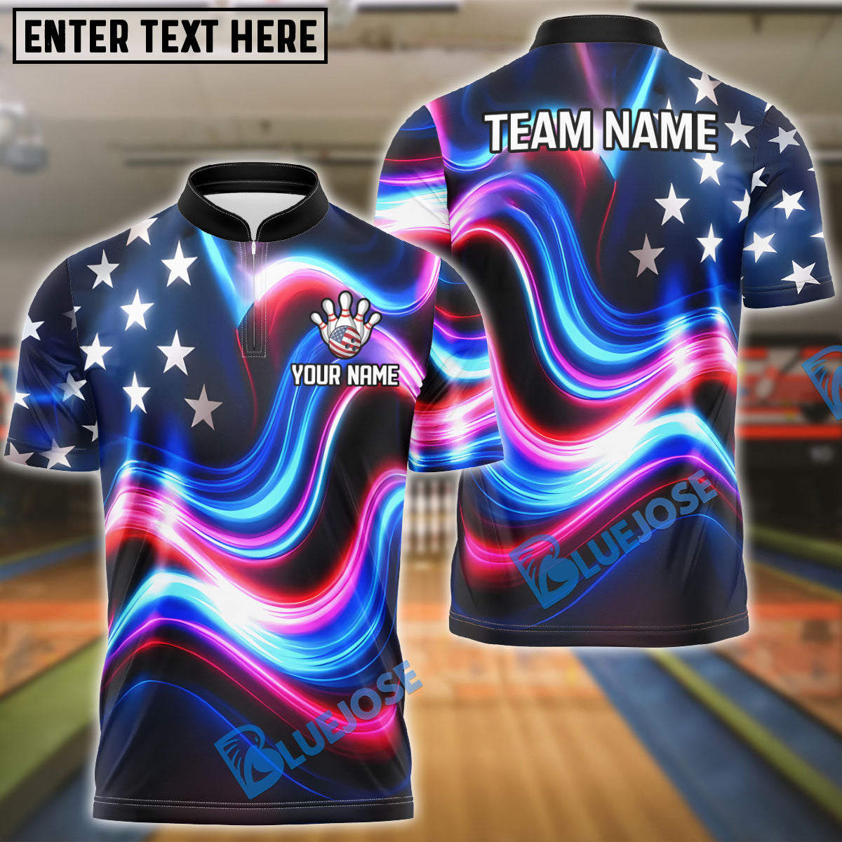 BlueJose Bowling And Pins American Flag Watercolor Customized Name, Team Name 3D Shirt