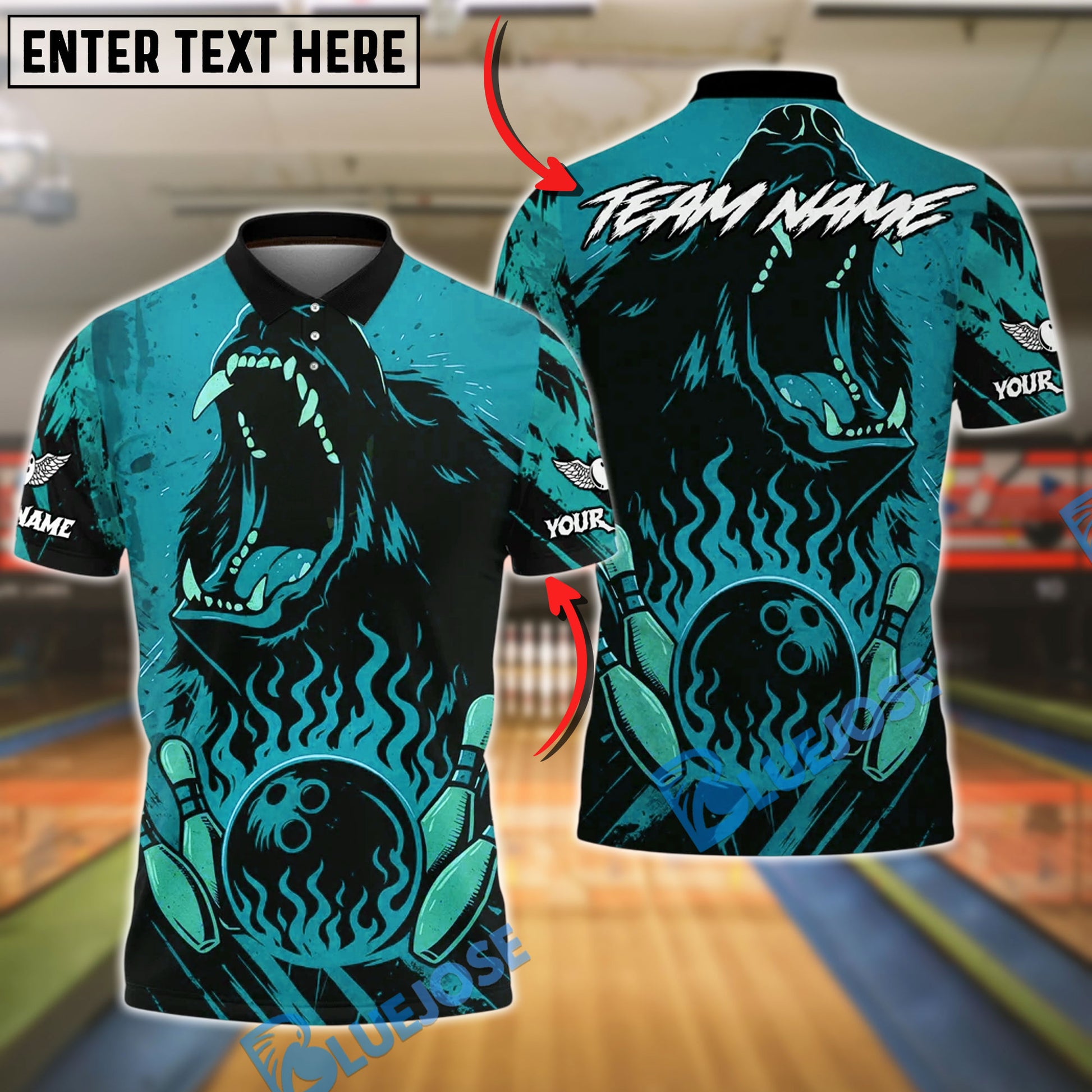 BlueJose Bowling And Pins Angry Bear Fire Strike Wild Roar Customized Name, Team Name 3D Shirt (4 Colors)