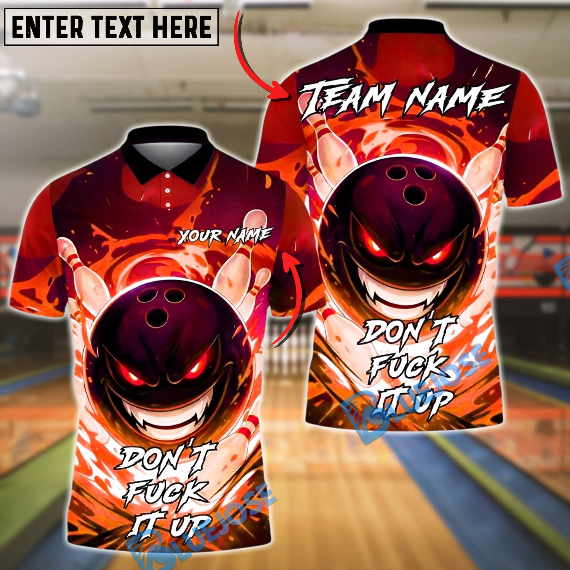 BlueJose Bowling And Pins Angry Flame Customized Name, Team Name 3D Shirt (4 Colors)