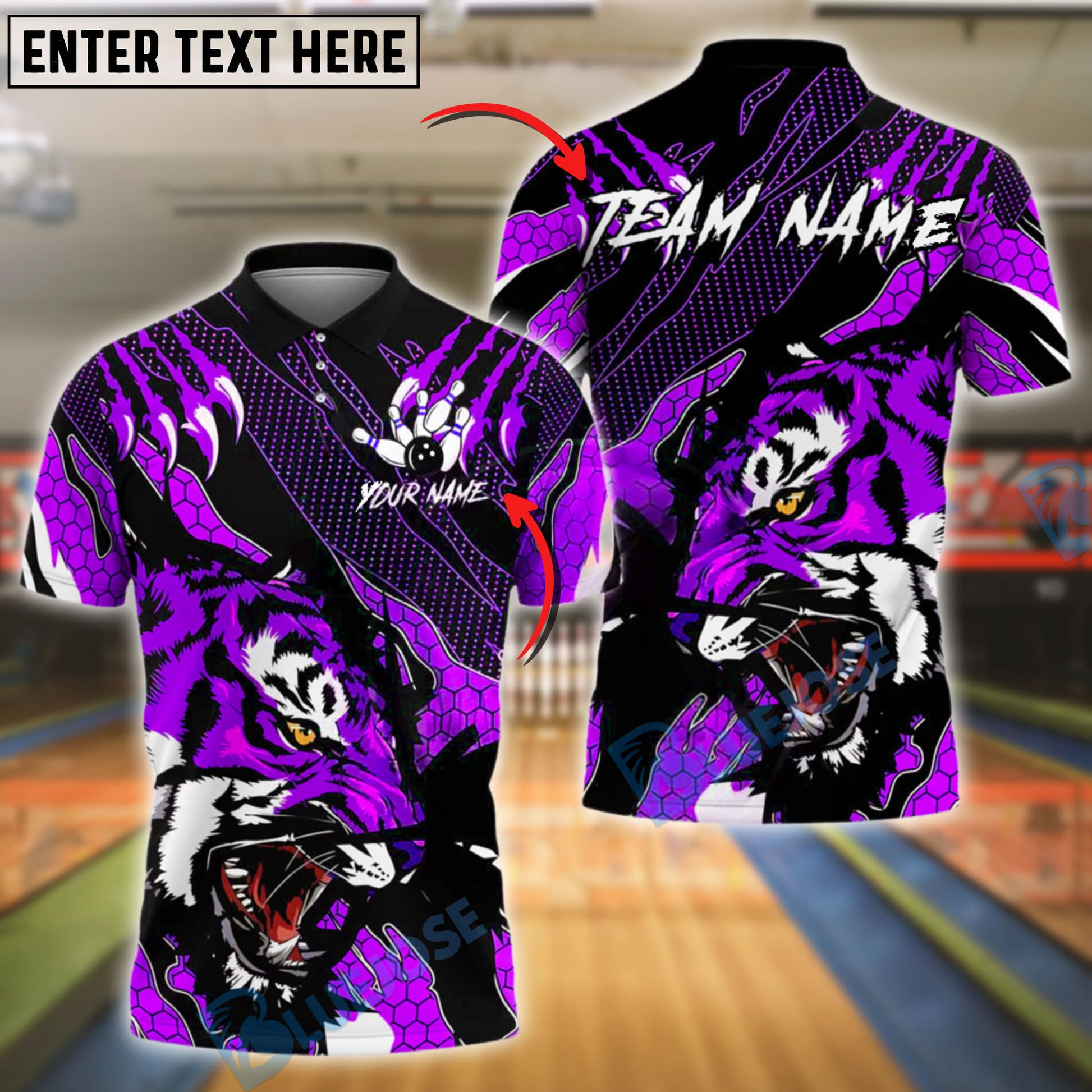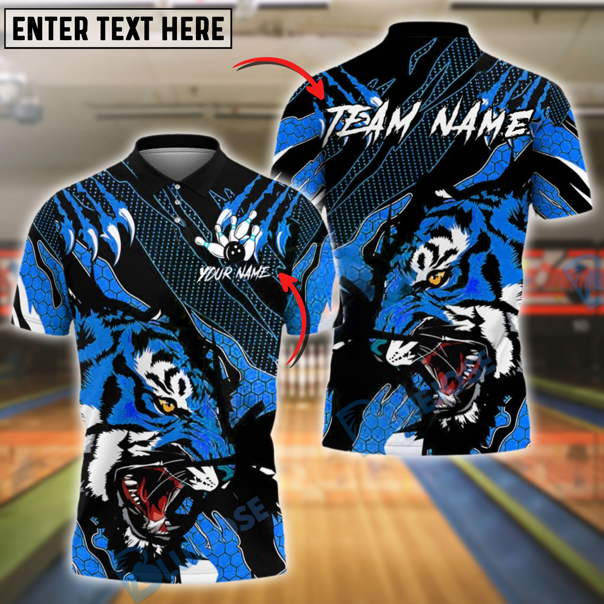 BlueJose Bowling And Pins Angry Tiger Claw Slash Pattern Customized Name, Team Name 3D Shirt (4 Colors)