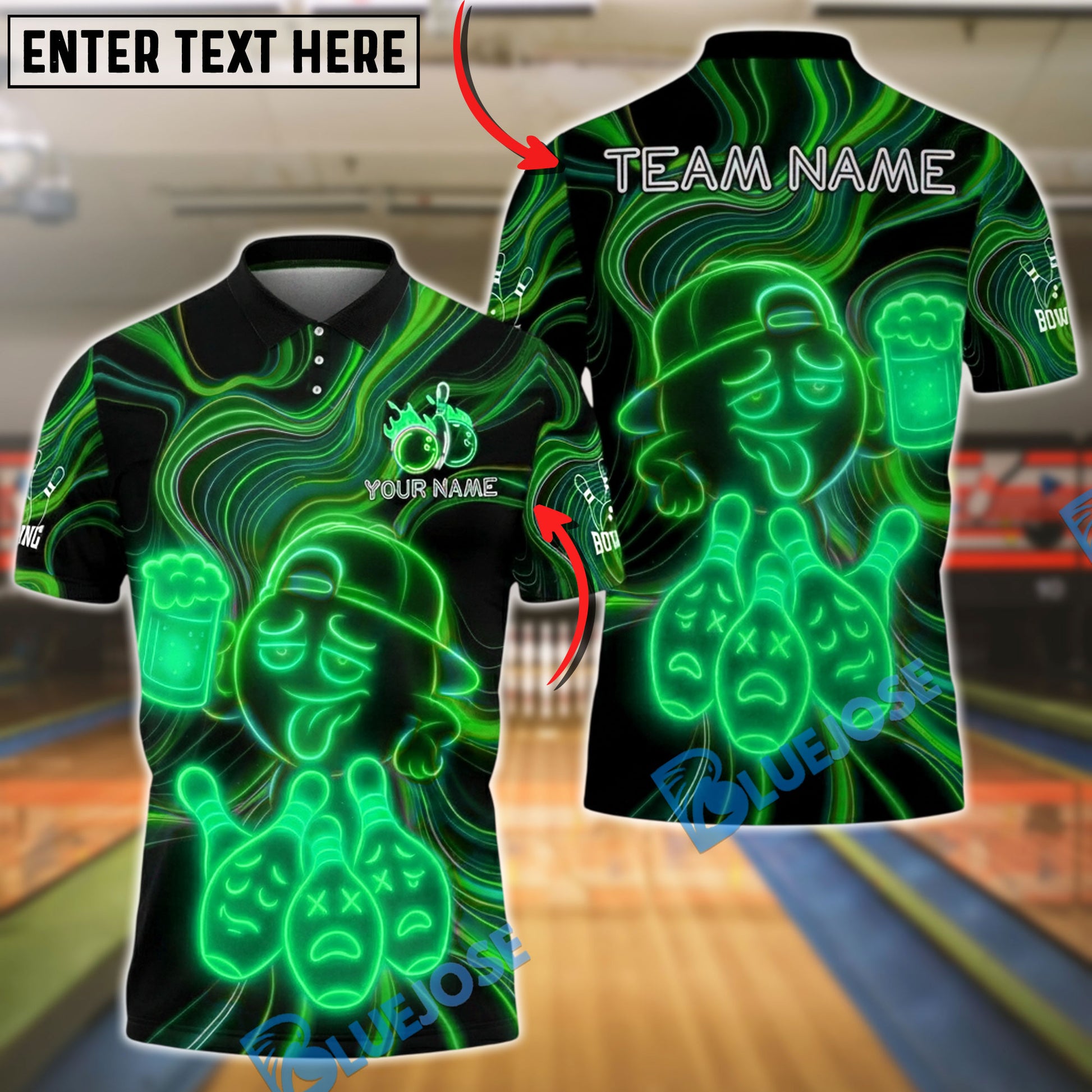 BlueJose Bowling And Pins Beer Funny Drunk Emoji Customized Name, Team Name 3D Shirt (4 Colors)