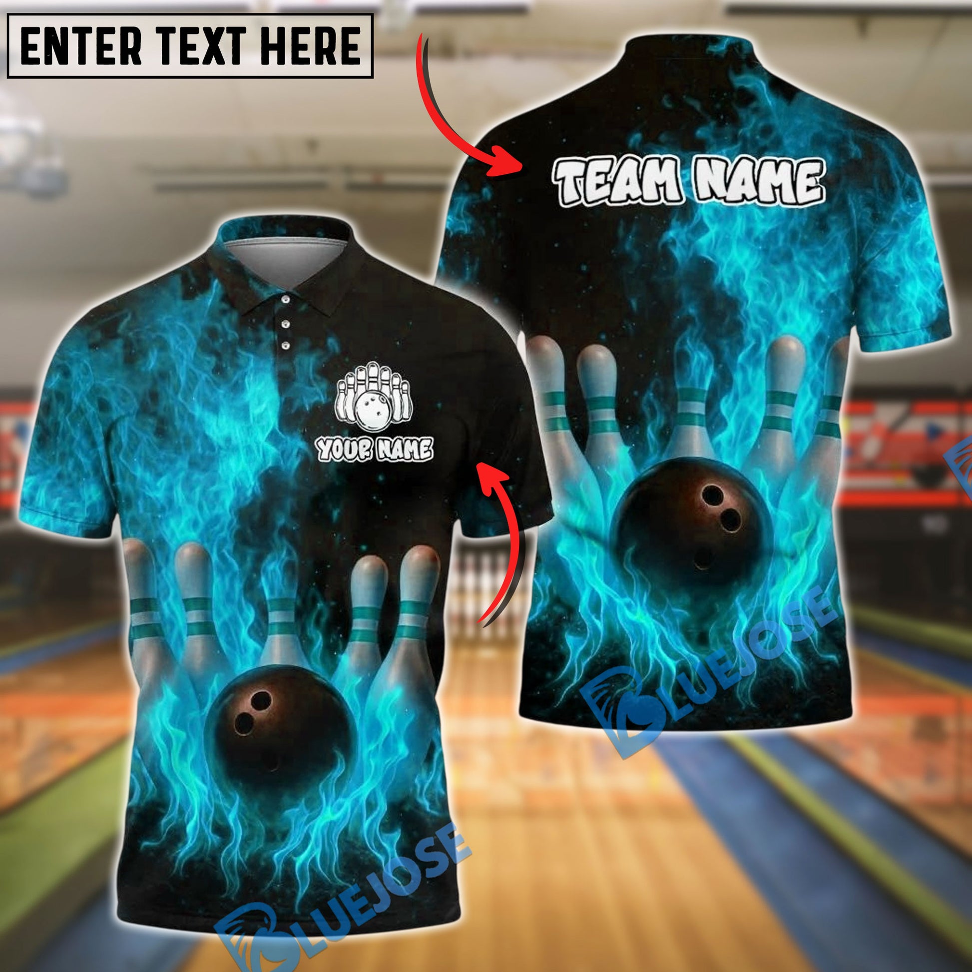 BlueJose Bowling And Pins Big Flame Customized Name, Team Name 3D Shirt (4 Colors)