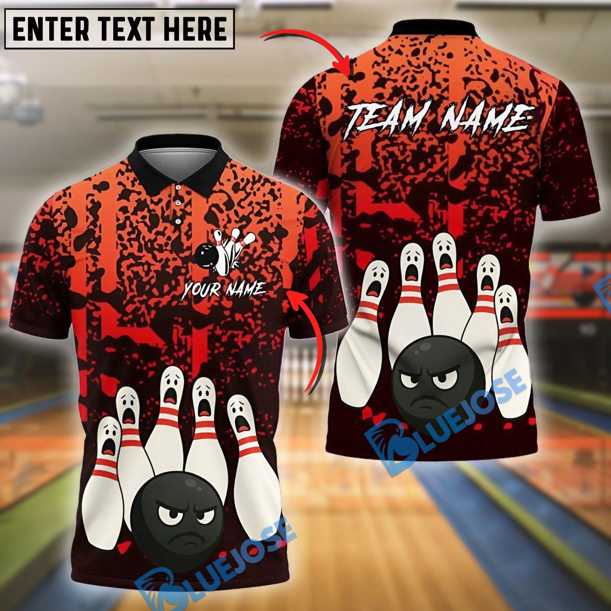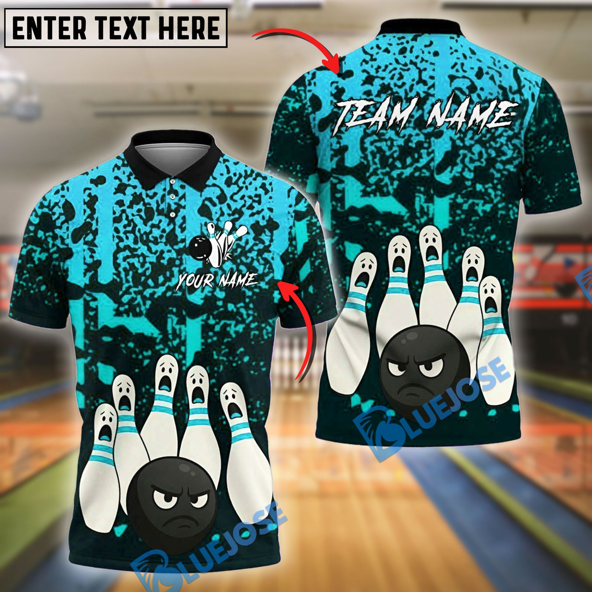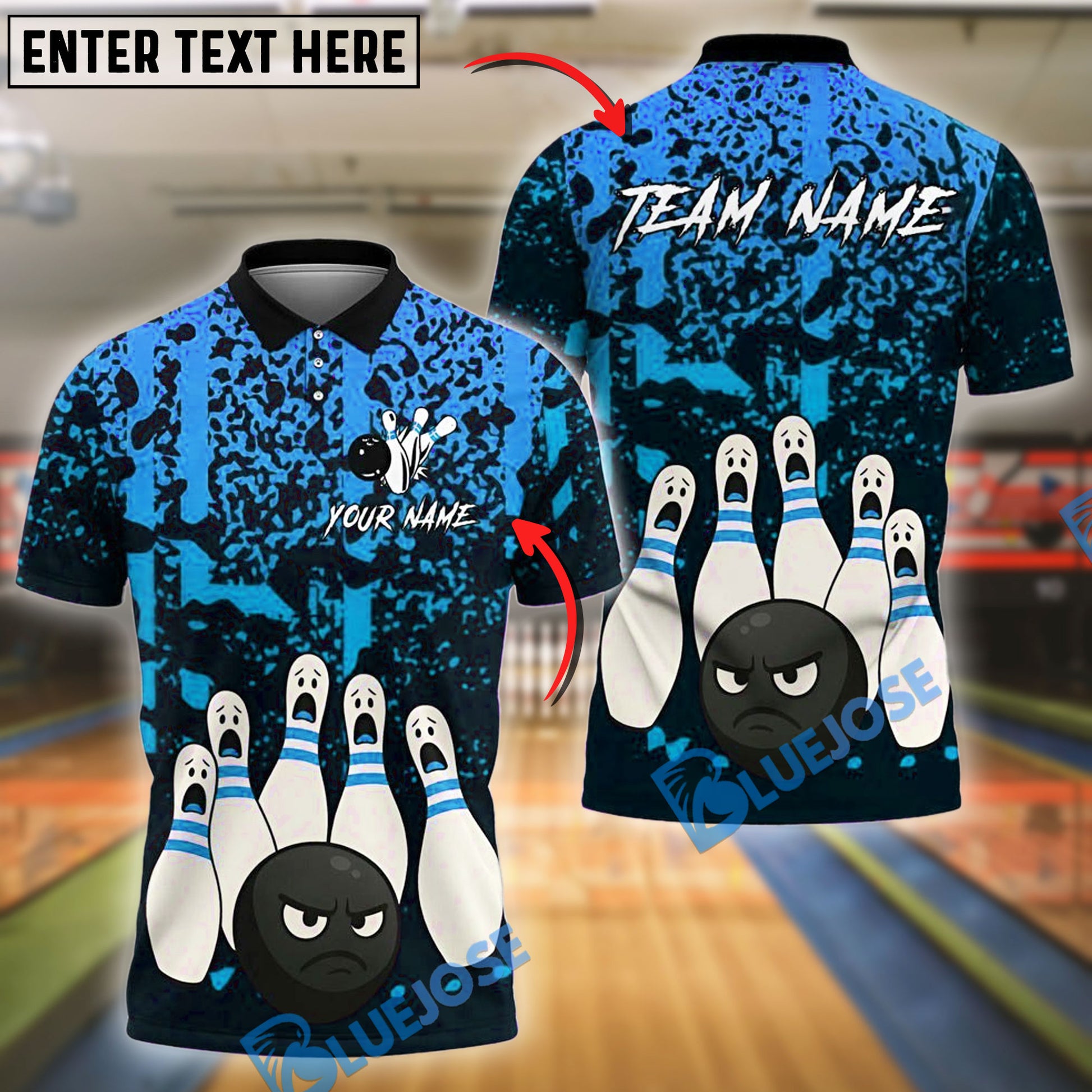 BlueJose Bowling And Pins Black Ball Fury Customized Name, Team Name 3D Shirt (4 Colors)