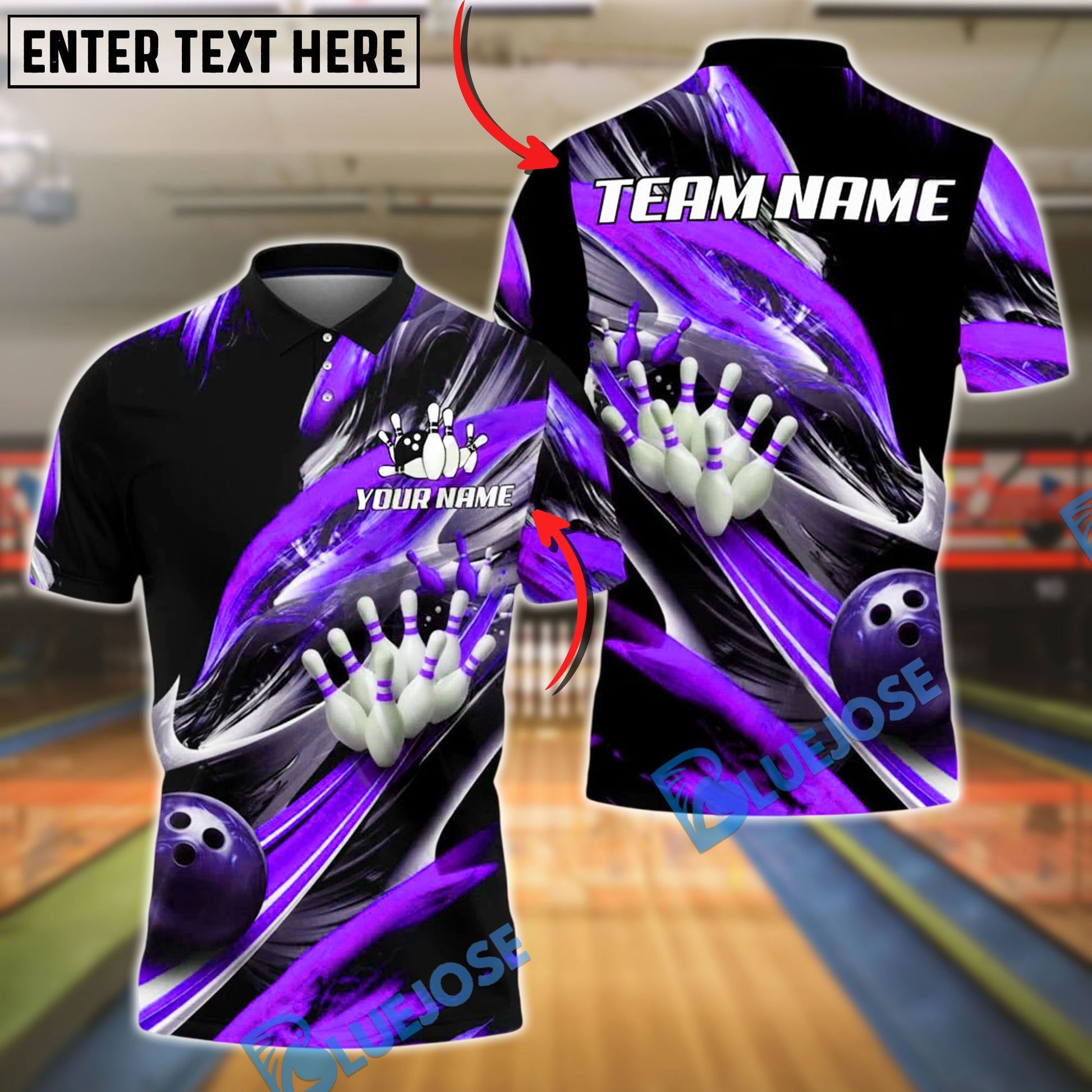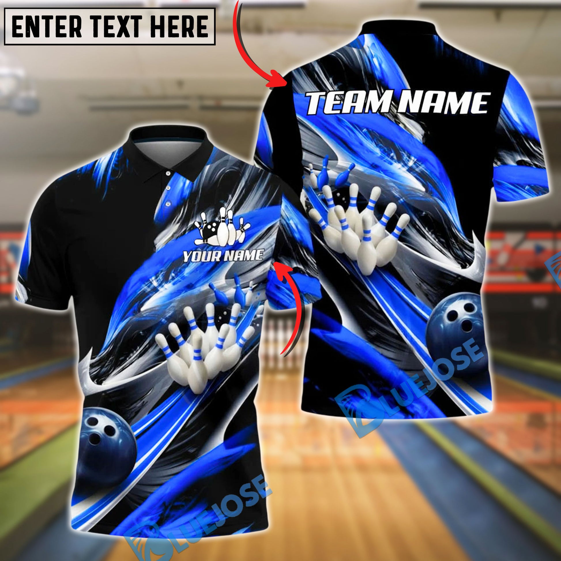 BlueJose Bowling And Pins Black Swirl Strike 3D Motion Design Customized Name, Team Name 3D Shirt (4 Colors)
