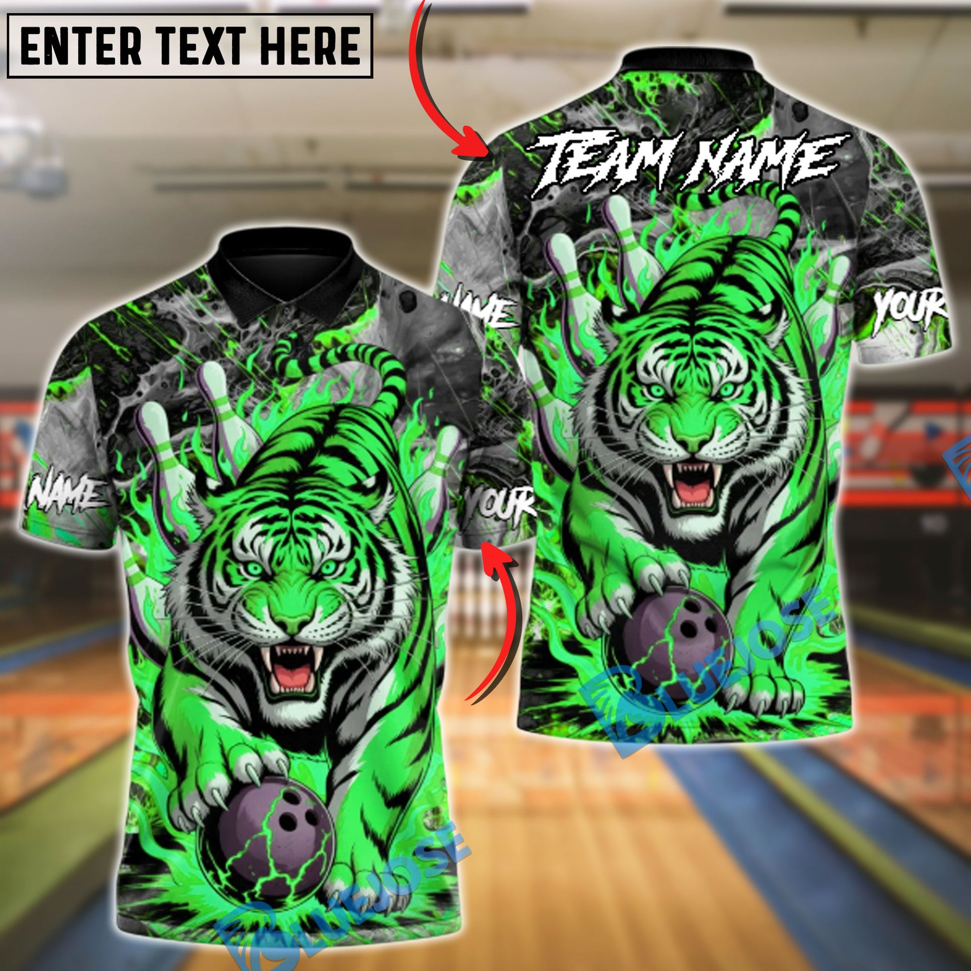 BlueJose Bowling And Pins Blaze Tiger Customized Name, Team Name 3D Shirt (6 Colors)
