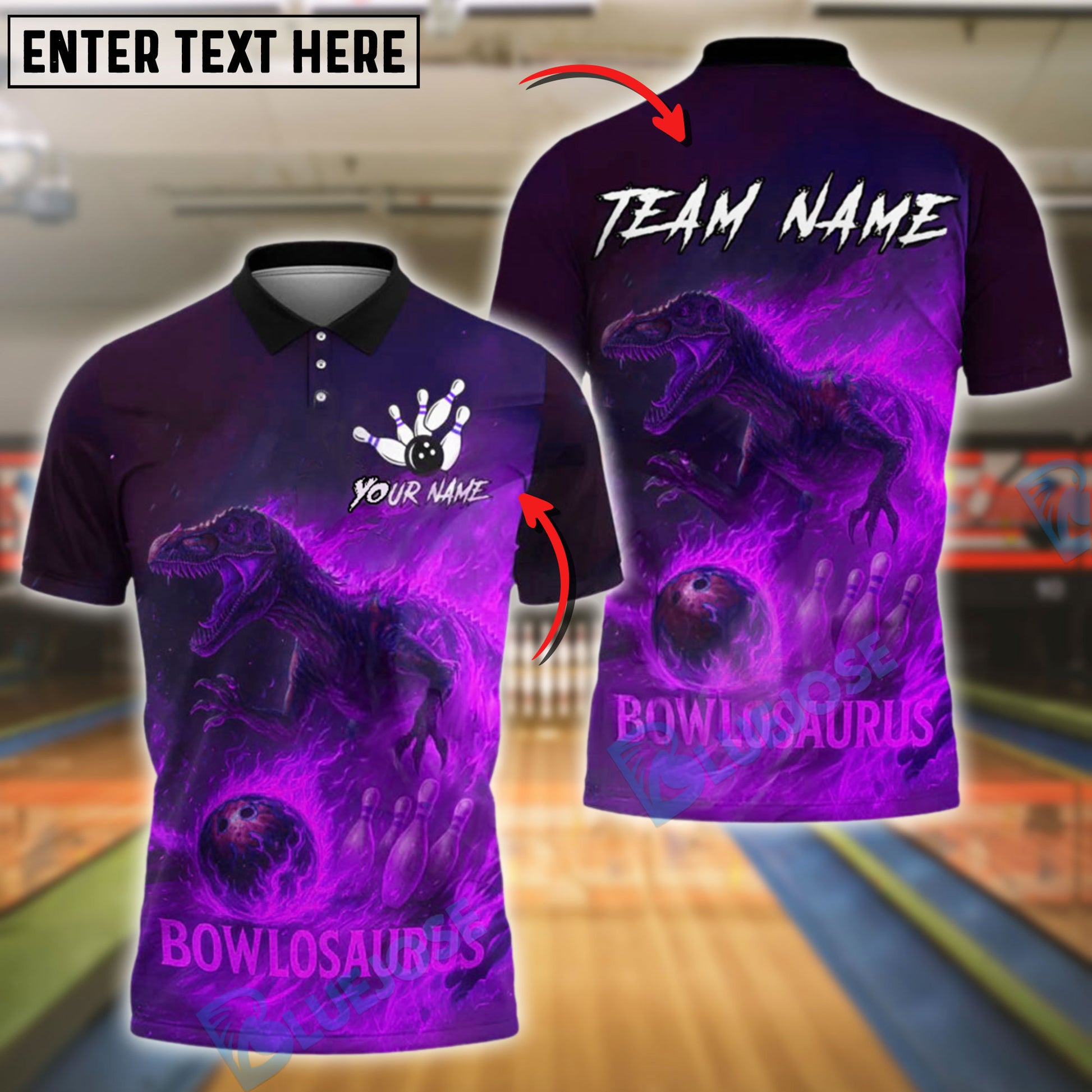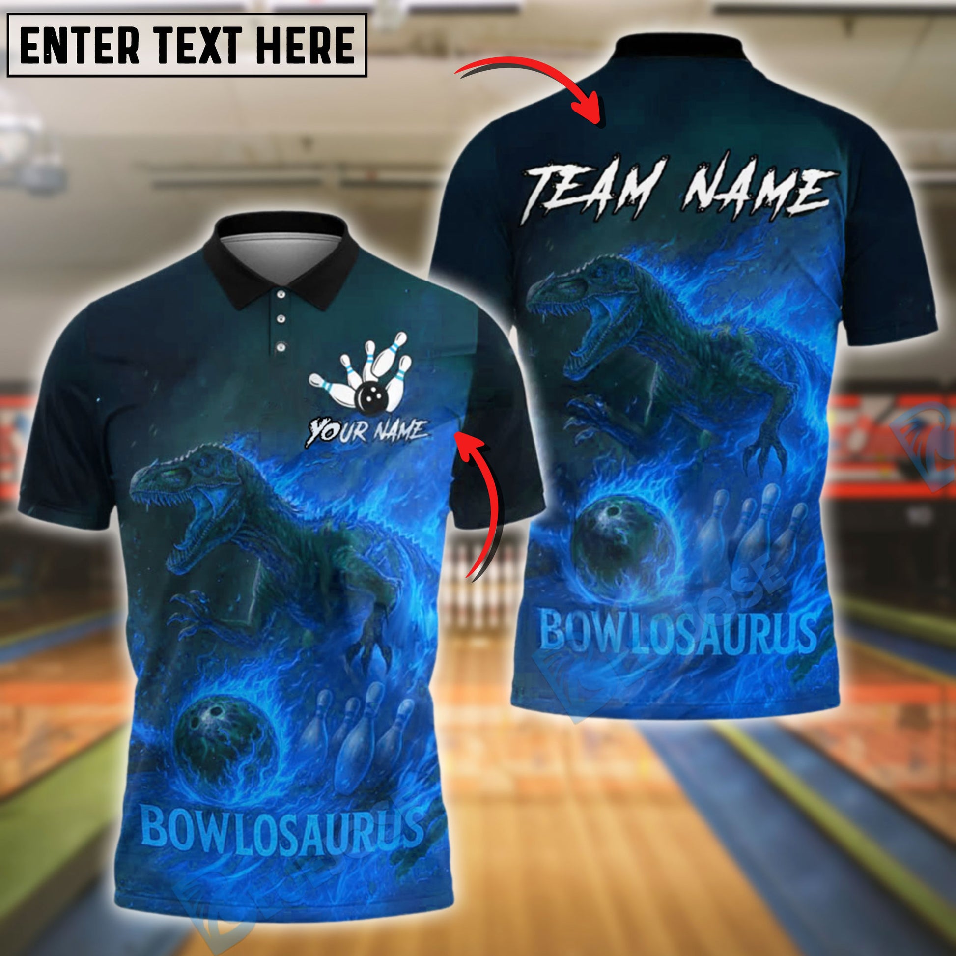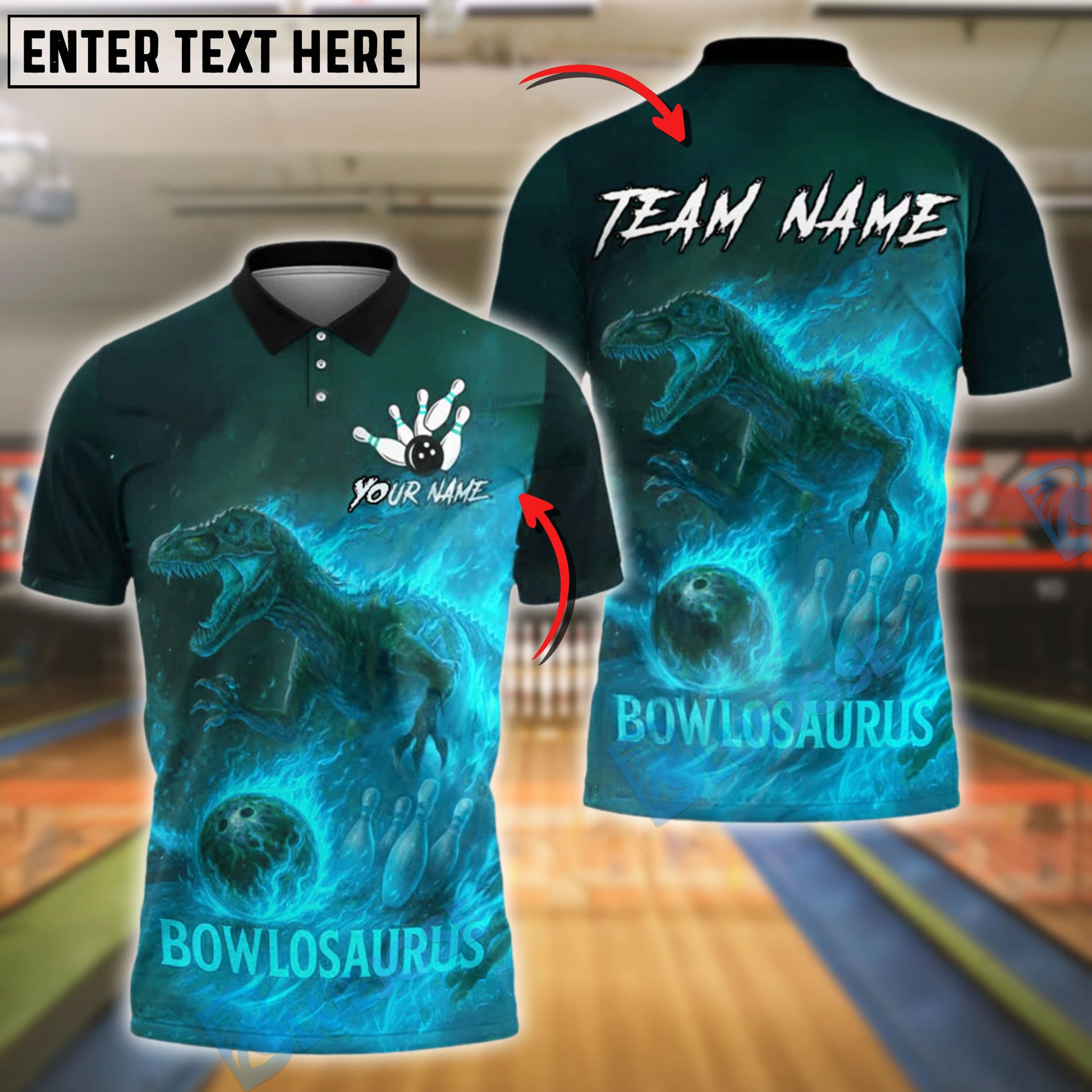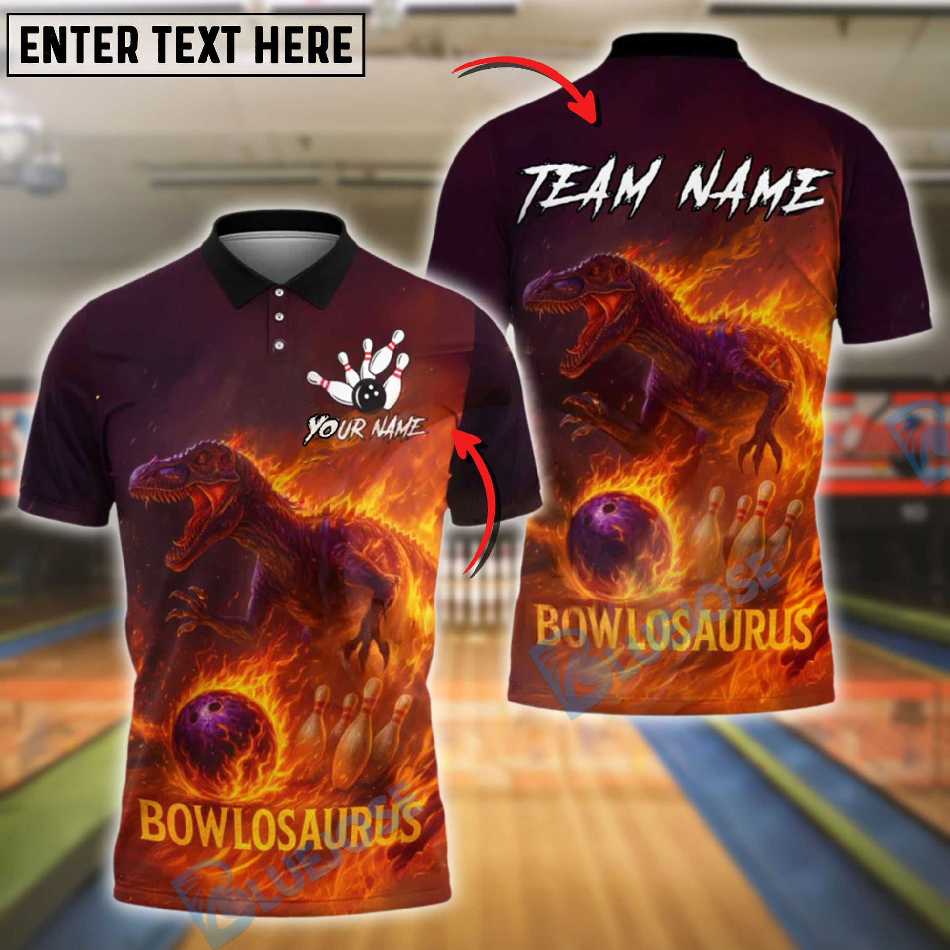 BlueJose Bowling And Pins Bowlosaurus T-Rex Firestorm Customized Name, Team Name 3D Shirt (4 Colors)