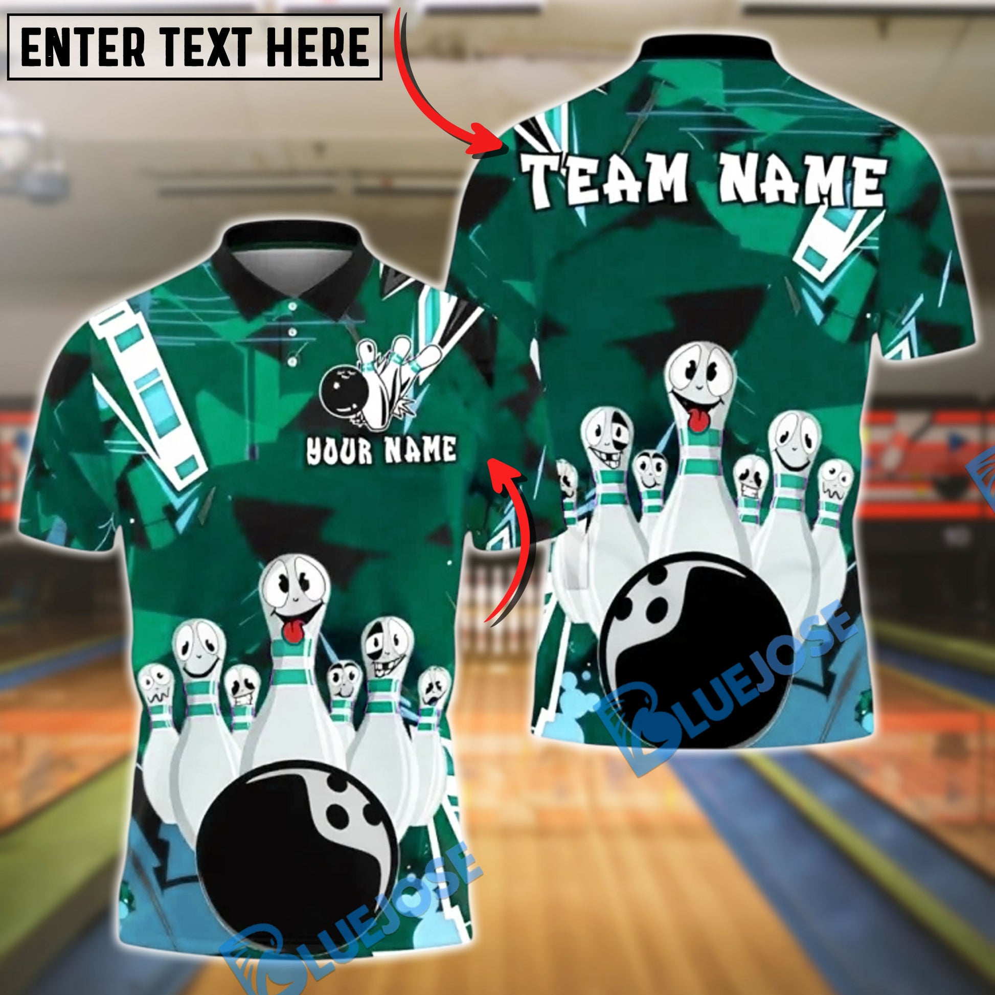 BlueJose Bowling And Pins Cartoon Funny Faces Customized Name, Team Name 3D Shirt (4 Colors)