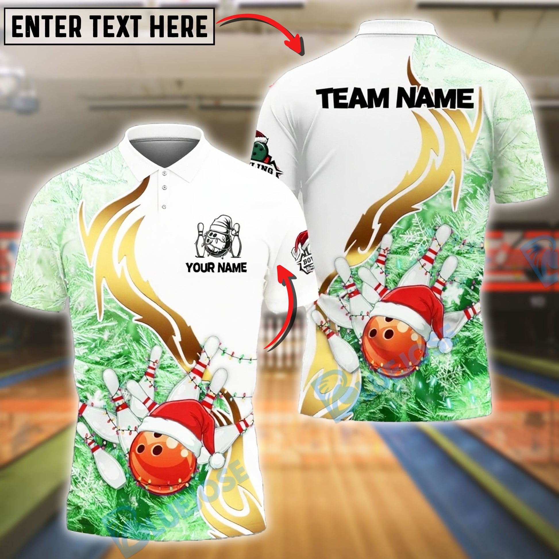 BlueJose Bowling And Pins Christmas Lights Fire Strike Customized Name, Team Name 3D Shirt (4 Colors)