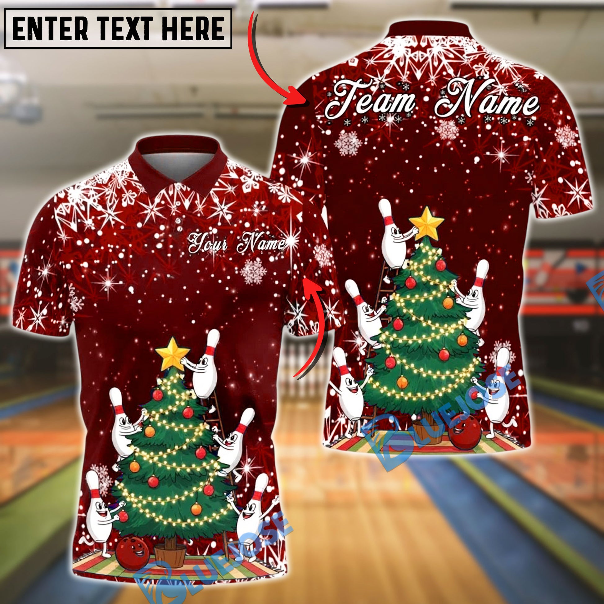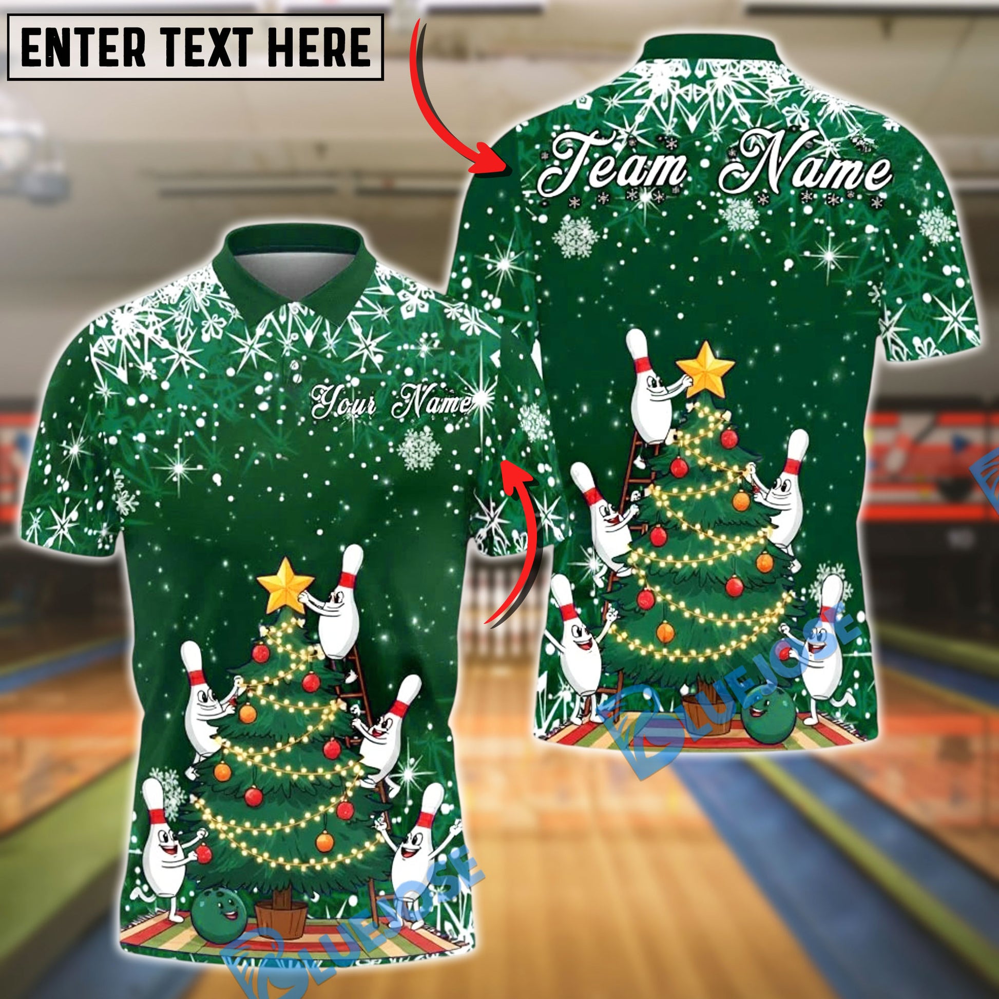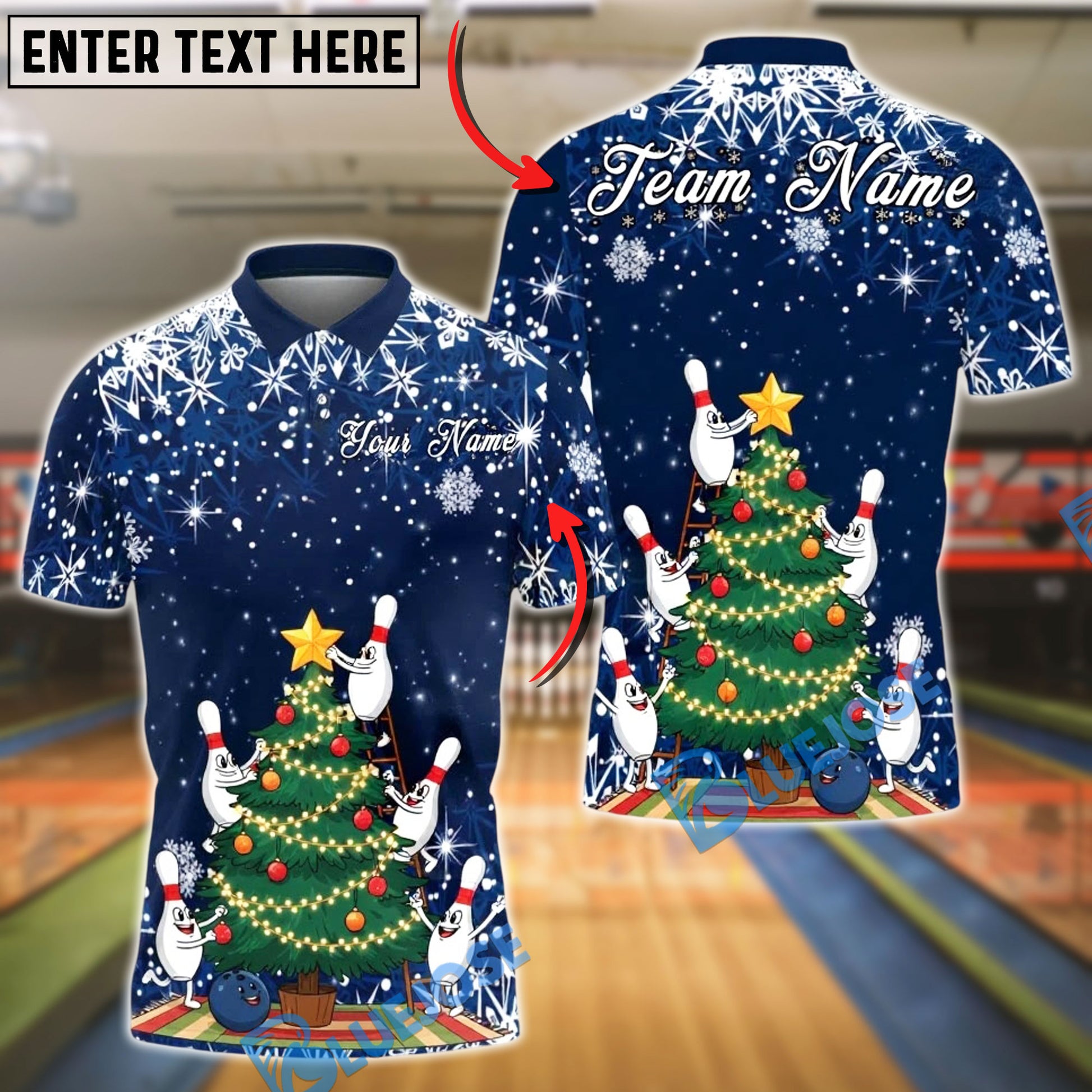 BlueJose Bowling And Pins Christmas Tree Holiday Snow Customized Name, Team Name 3D Shirt (4 Colors)