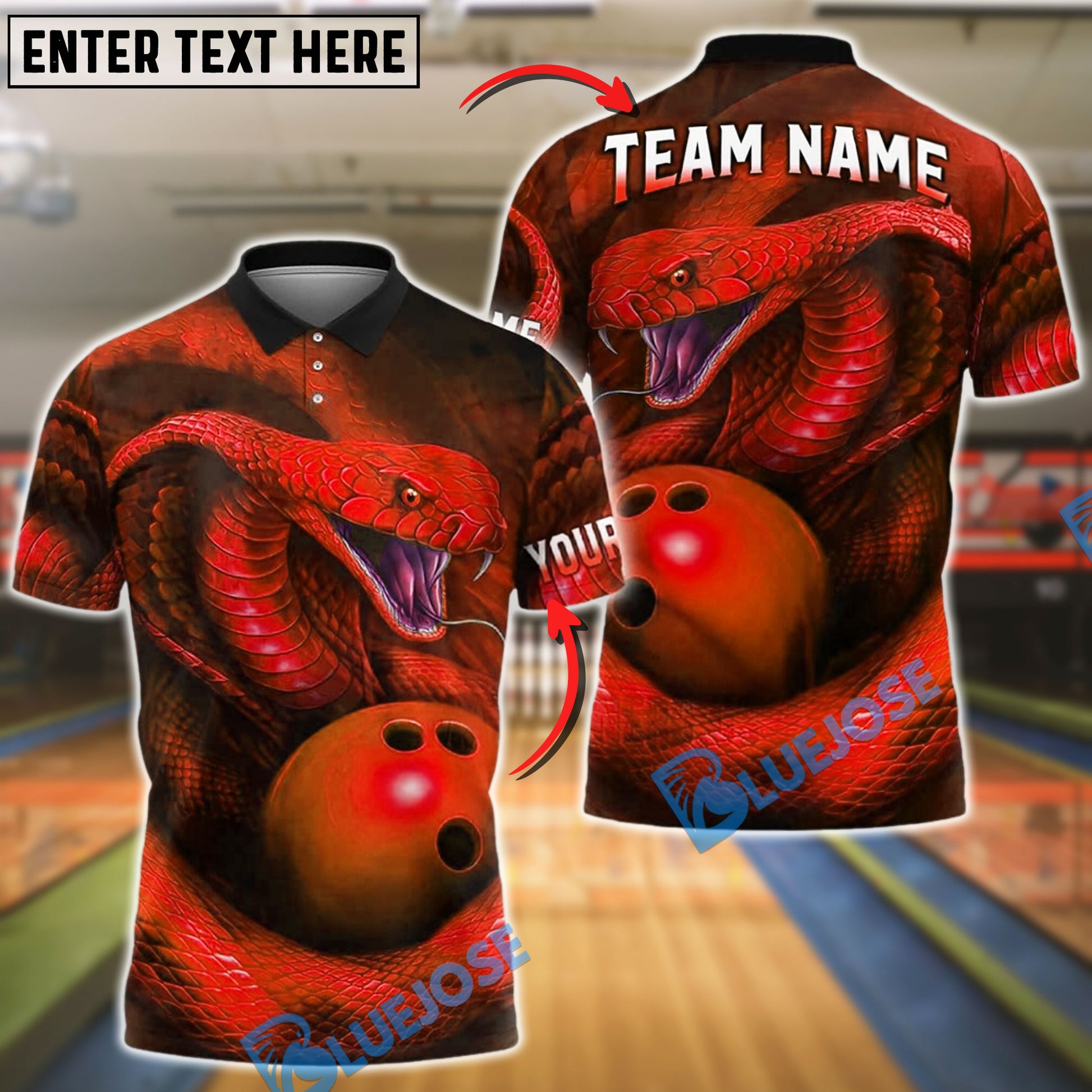 BlueJose Bowling And Pins Cobra Snake Design Customized Name, Team Name 3D Shirt (4 Colors)