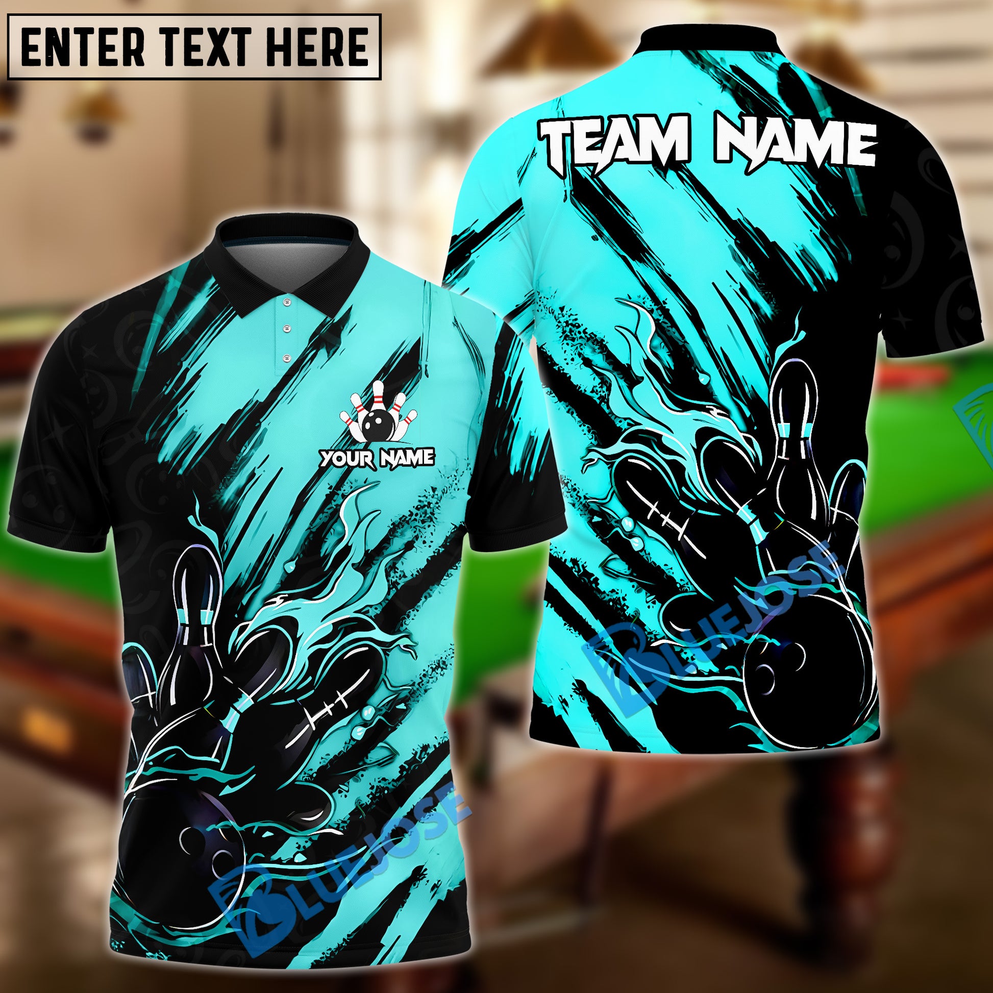 BlueJose Bowling And Pins Color Paint Customized Name, Team Name 3D Shirt (4 Colors)
