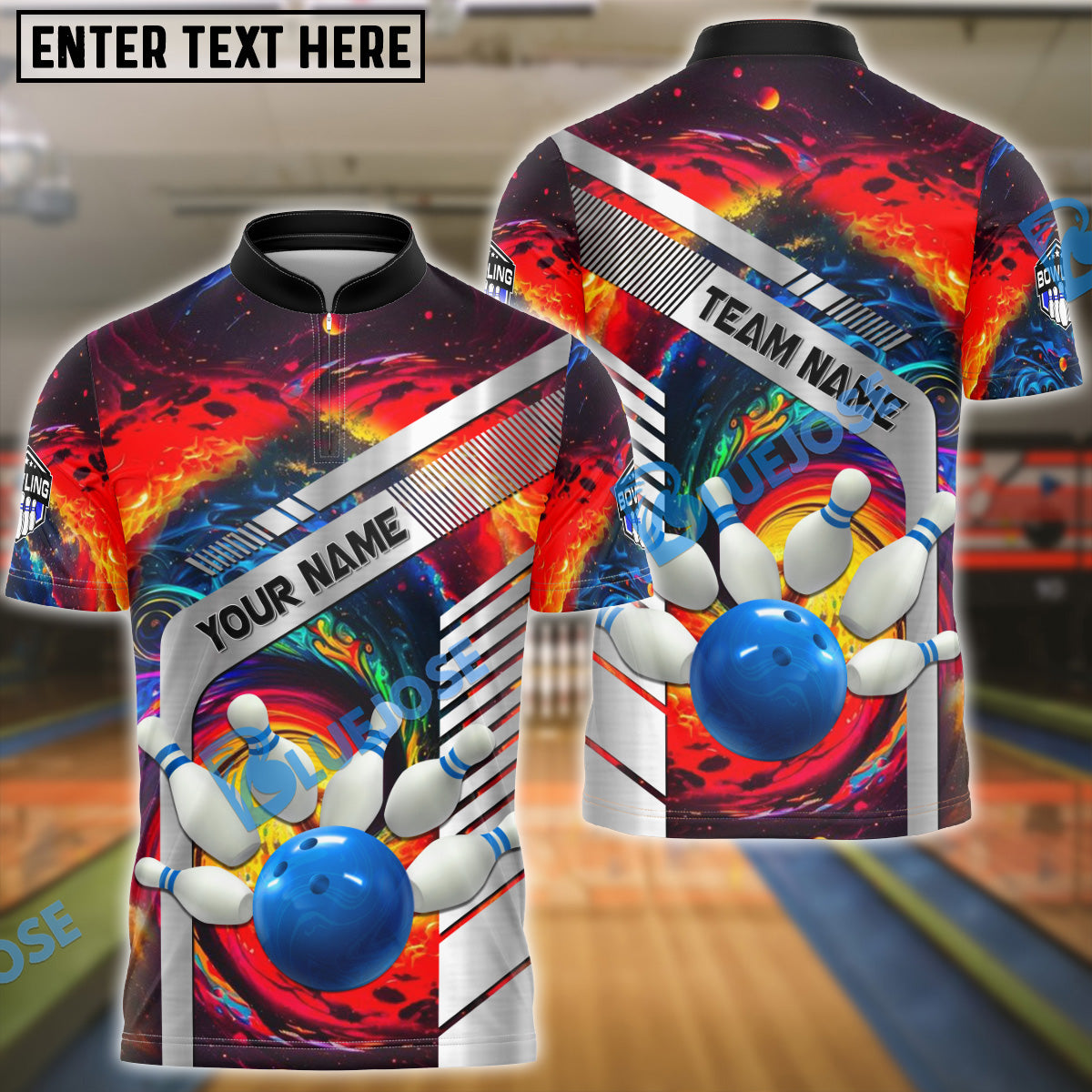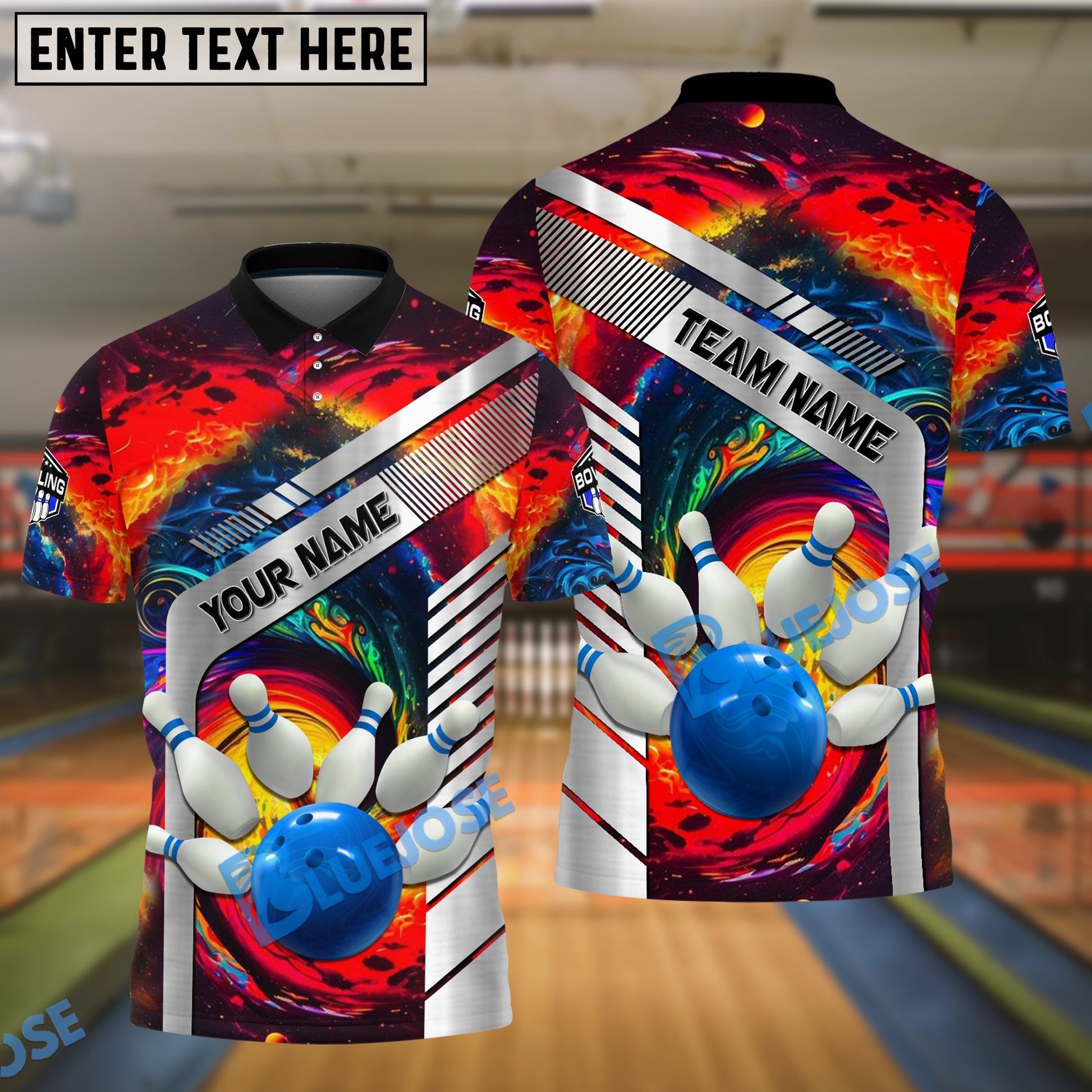 BlueJose Bowling And Pins Colorful Customized Name 3D Shirt (4 Colors)