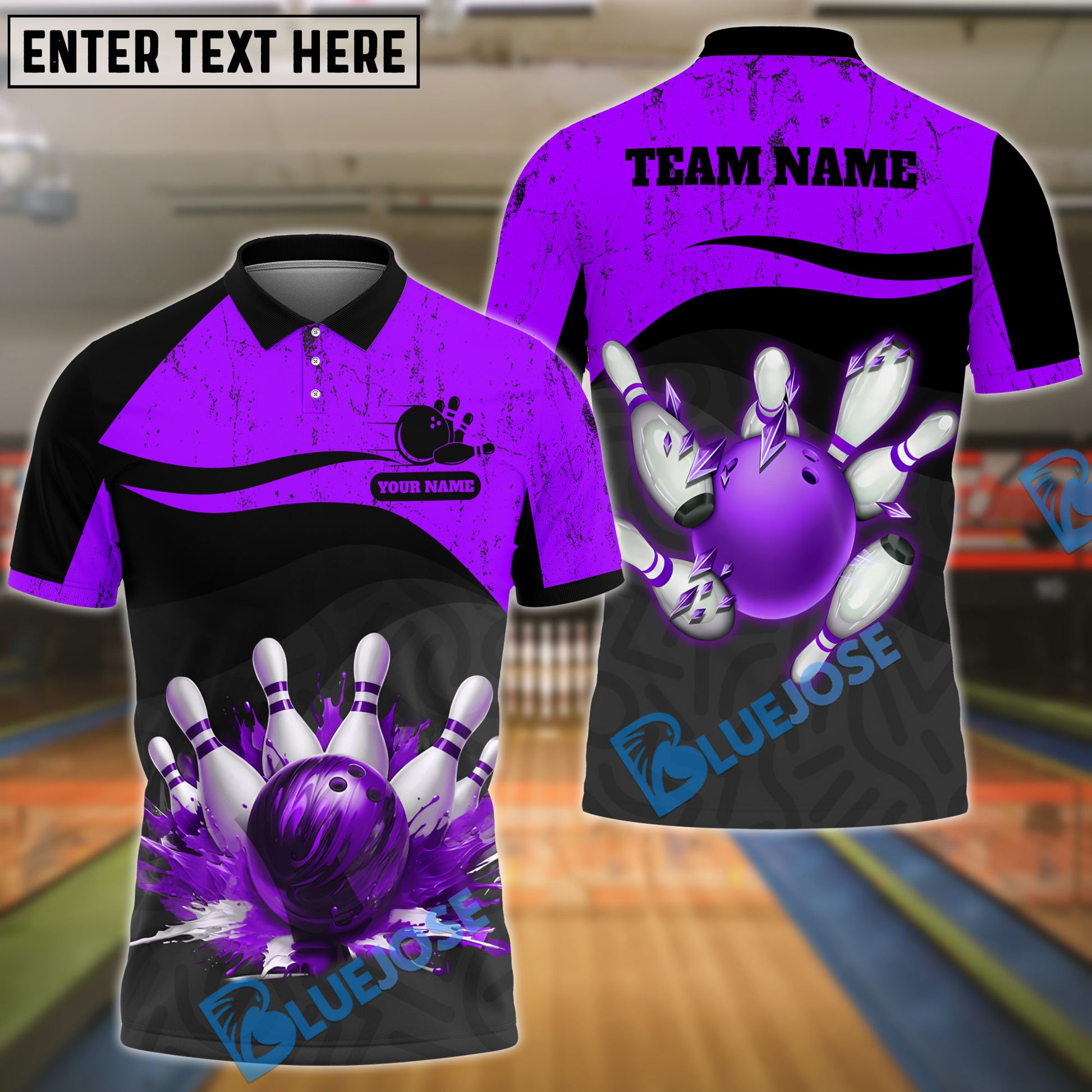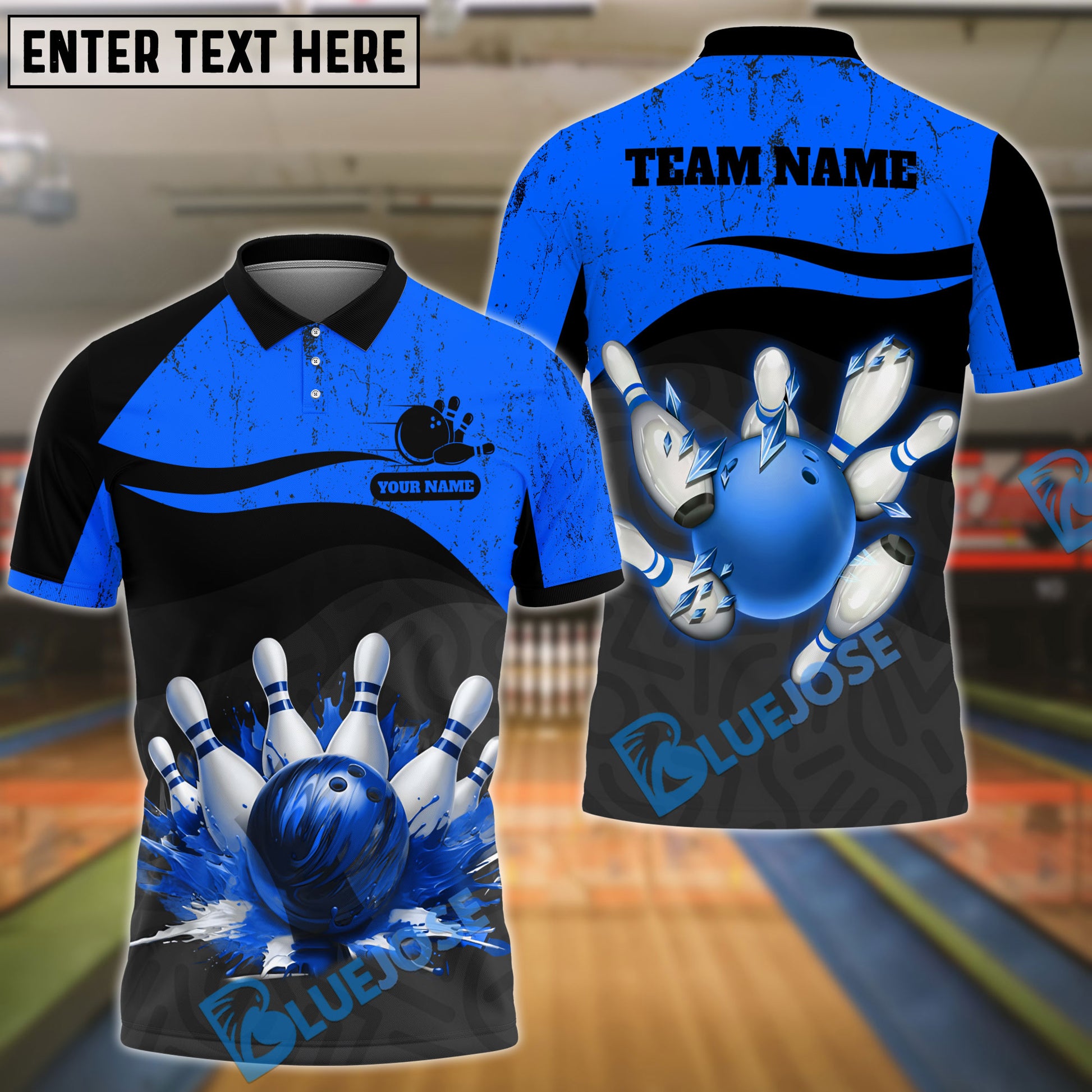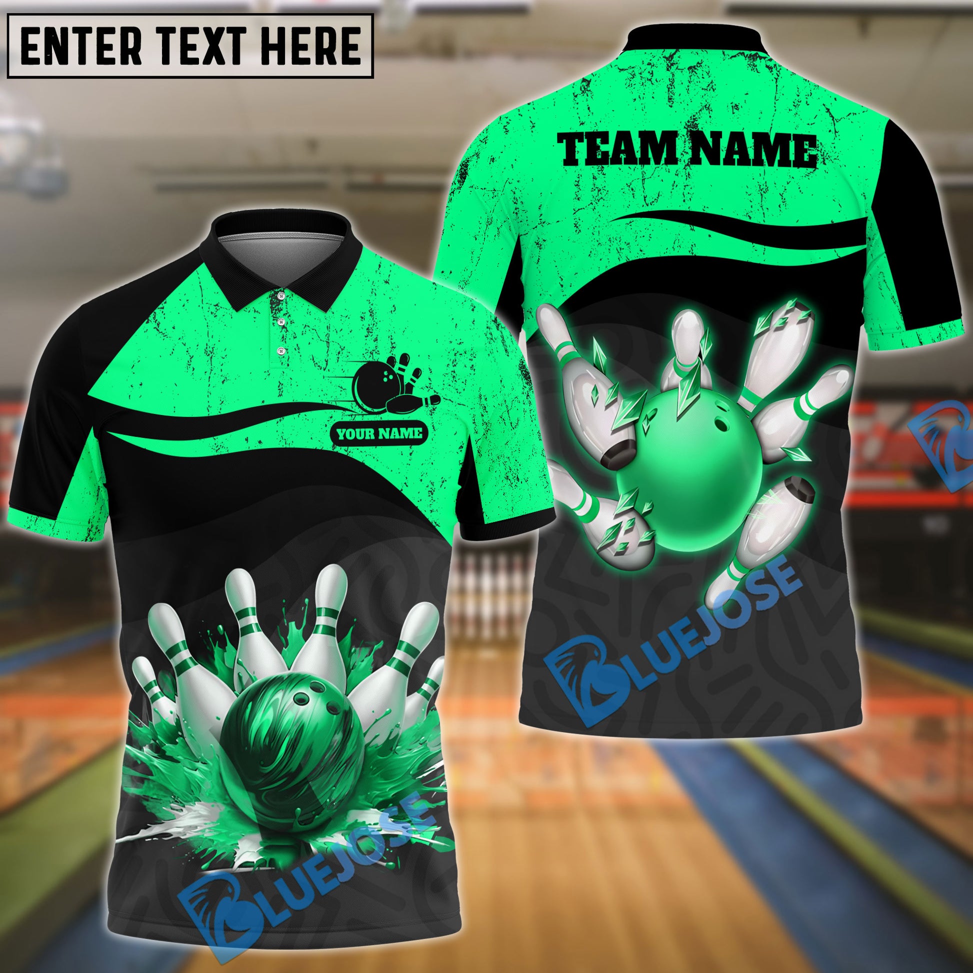 BlueJose Bowling And Pins Colorful Wave Customized Name 3D Shirt (5 Colors)