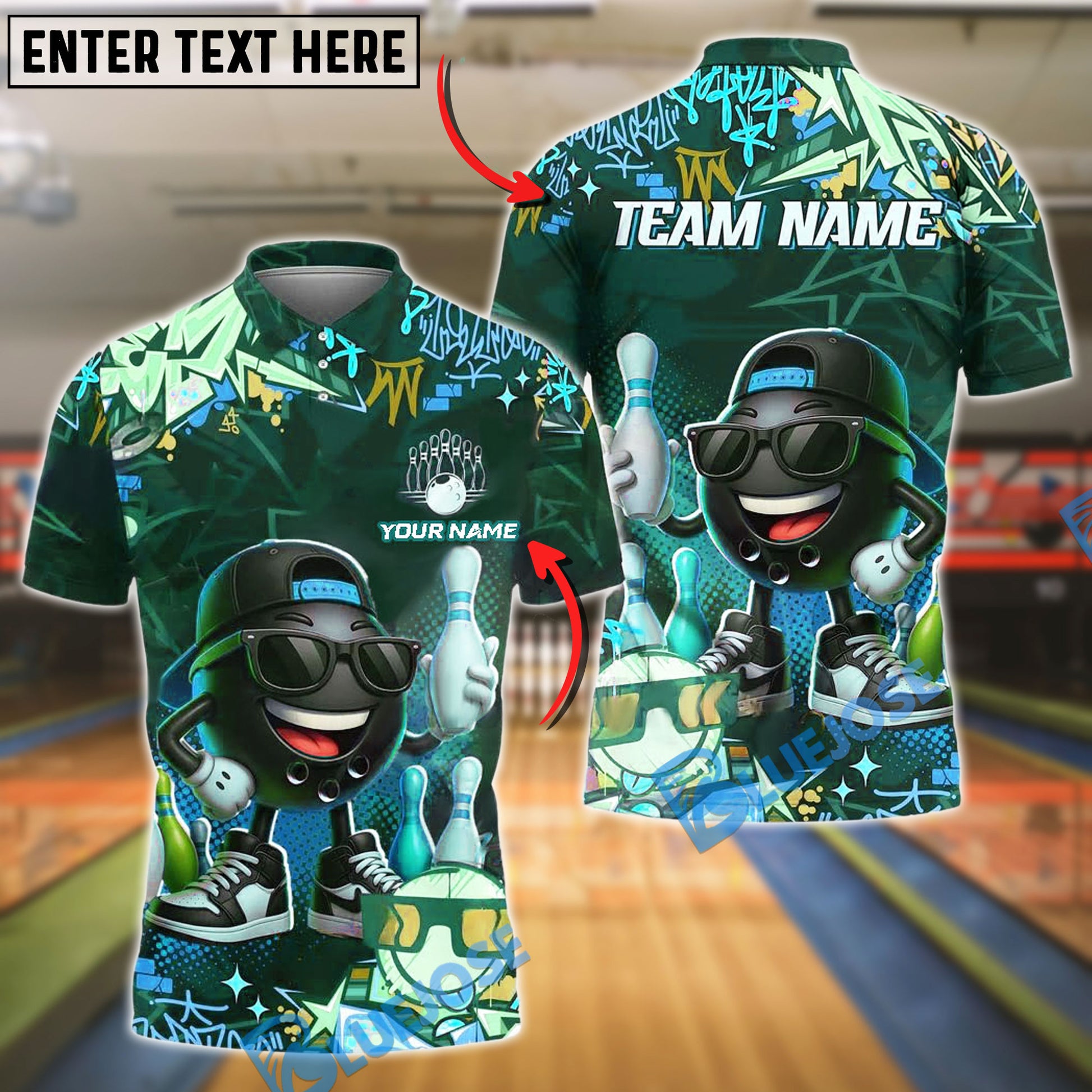 BlueJose Bowling And Pins Cool Street Style Graffiti Customized Name, Team Name 3D Shirt (4 Colors)
