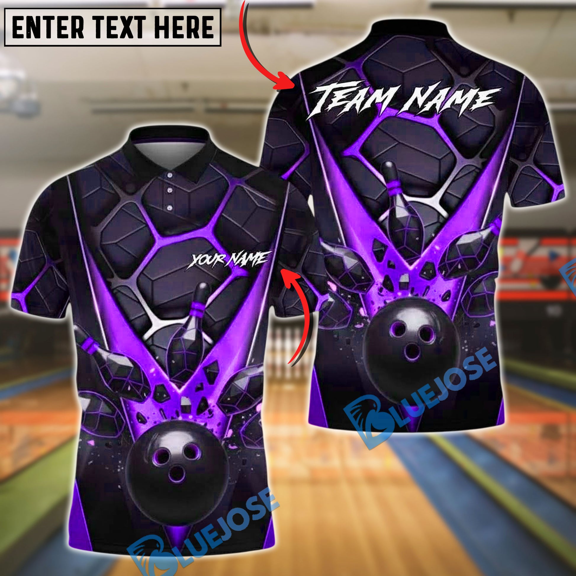 BlueJose Bowling And Pins Copper Hexagon Pattern Customized Name, Team Name 3D Shirt (4 Colors)