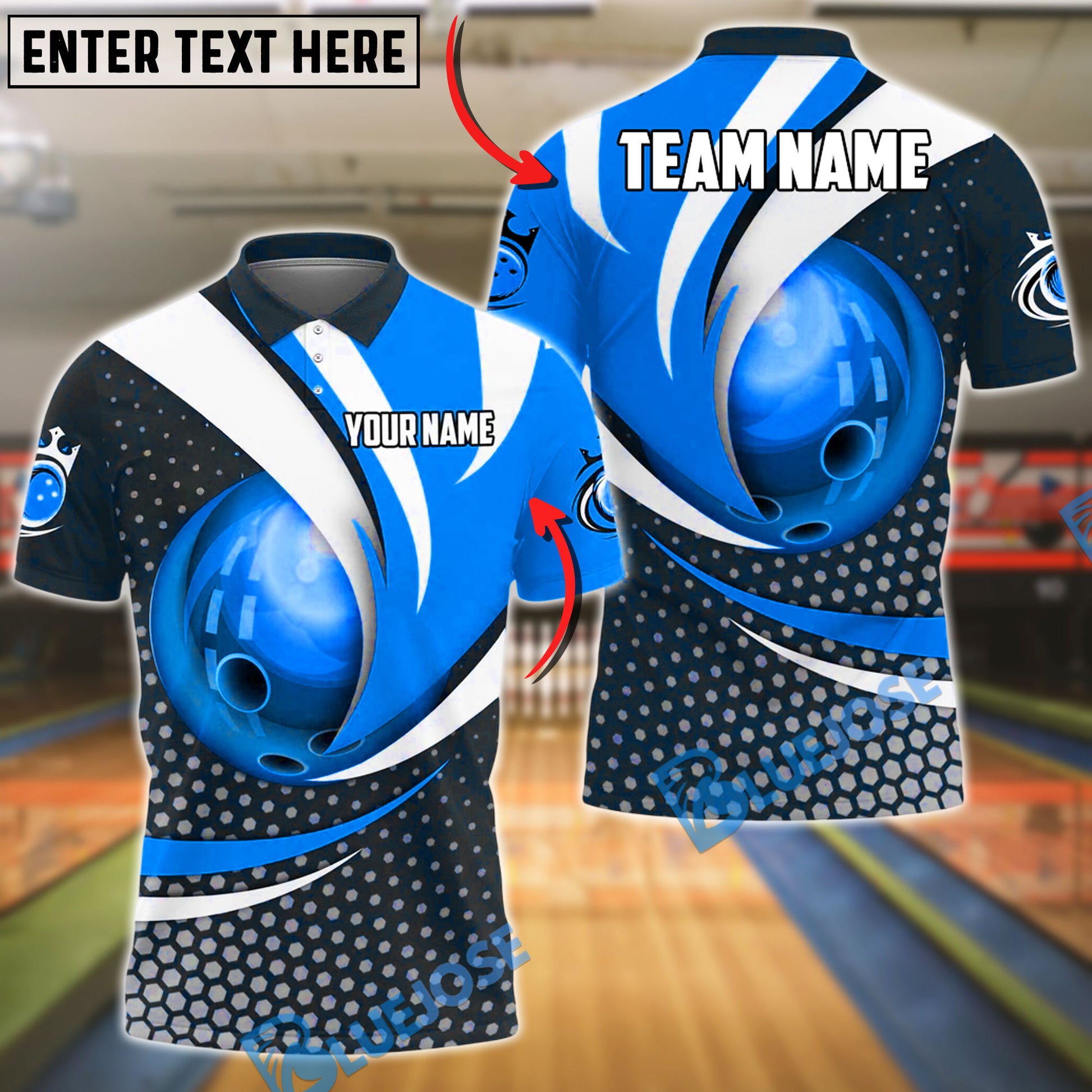 BlueJose Bowling And Pins Curved Strike Customized Name 3D Shirt (6 Colors)