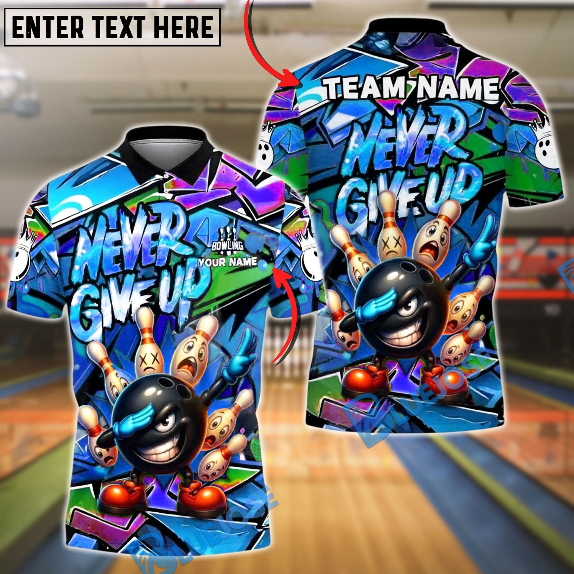 BlueJose Bowling And Pins Dab Never Give Up Graffiti Customized Name, Team Name 3D Shirt (4 Colors)