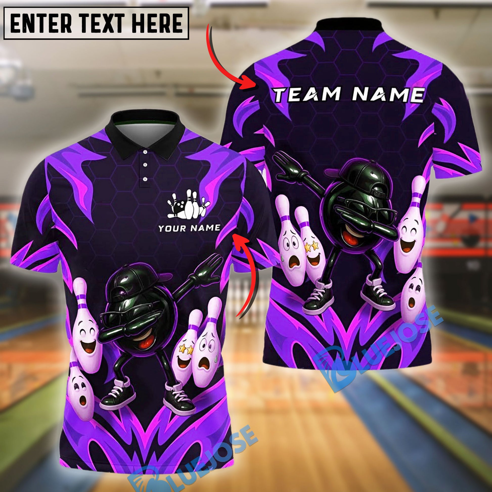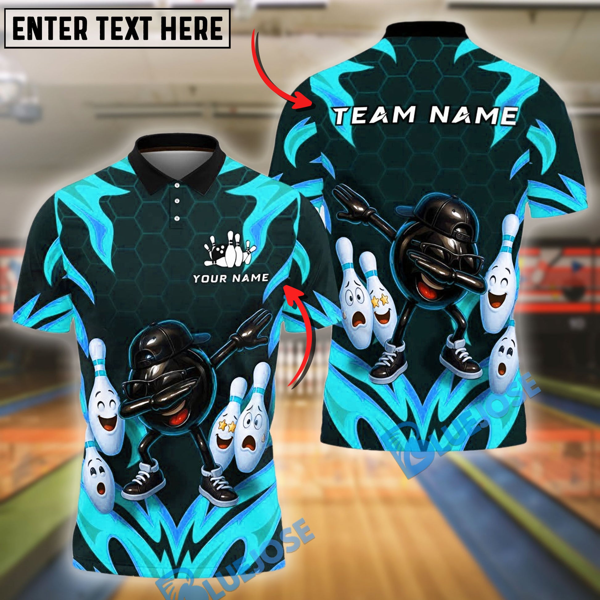 BlueJose Bowling And Pins Dabbing Ball Fire Flames Style Customized Name, Team Name 3D Shirt (4 Colors)