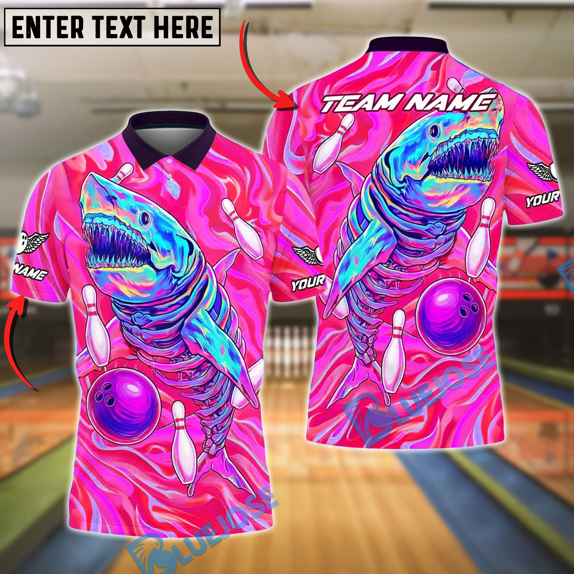 BlueJose Bowling And Pins Deep Sea Shark Neon Style Customized Name, Team Name 3D Shirt (4 Colors)