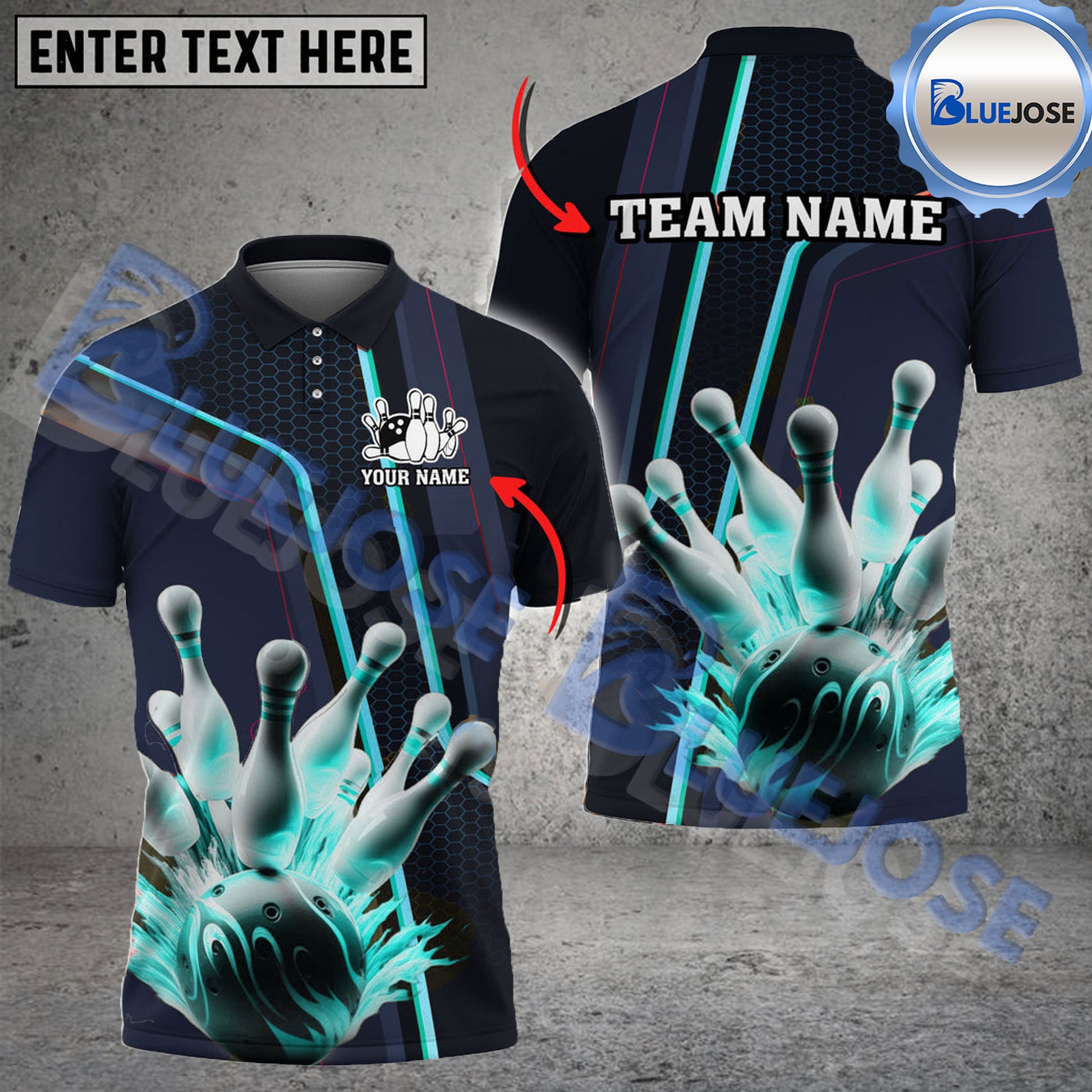 BlueJose Bowling And Pins Digital Hexagon Pattern Customized Name 3D Shirt (4 Colors)