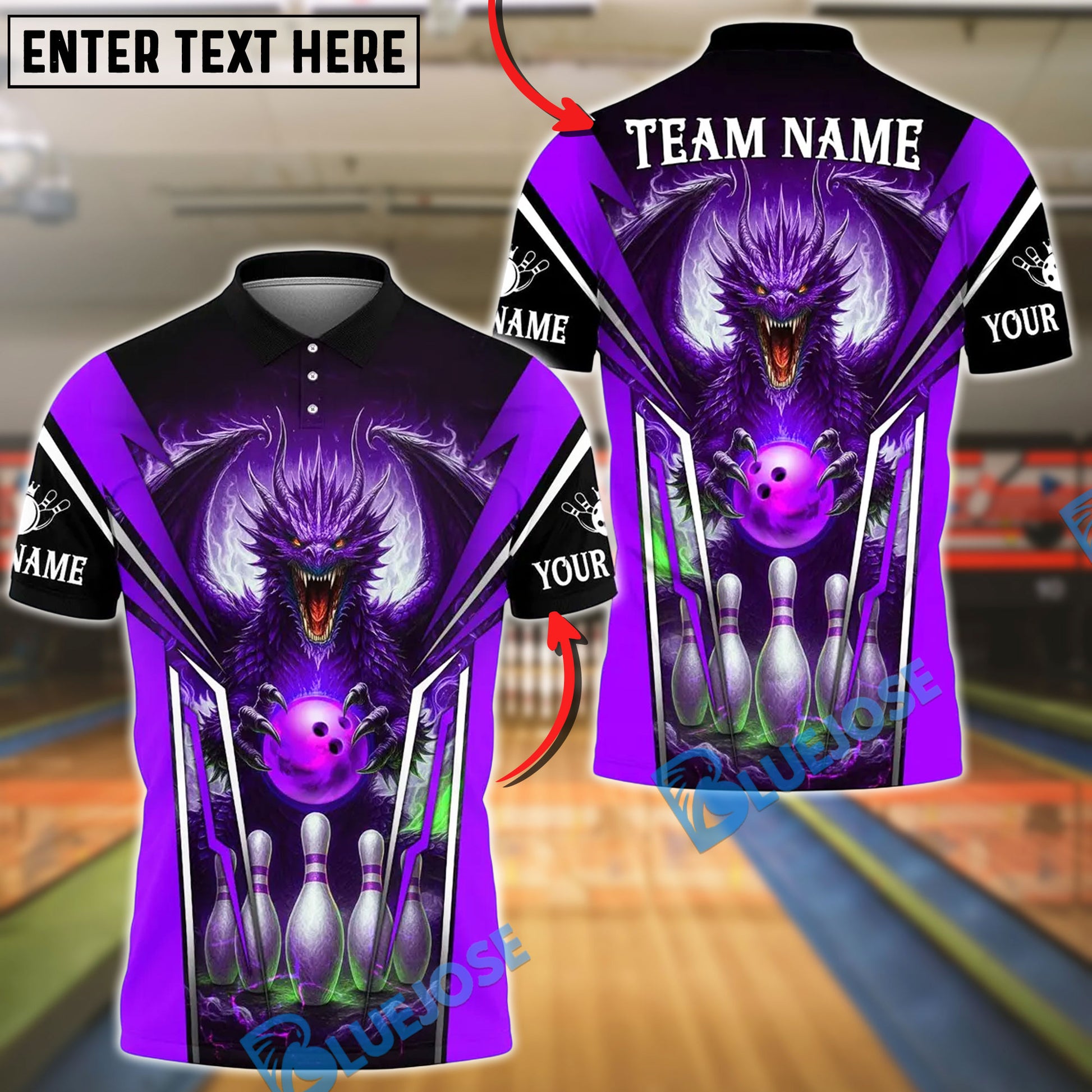 BlueJose Bowling And Pins Dragon With Bowling Design Customized Name, Team Name 3D Shirt (4 Colors)