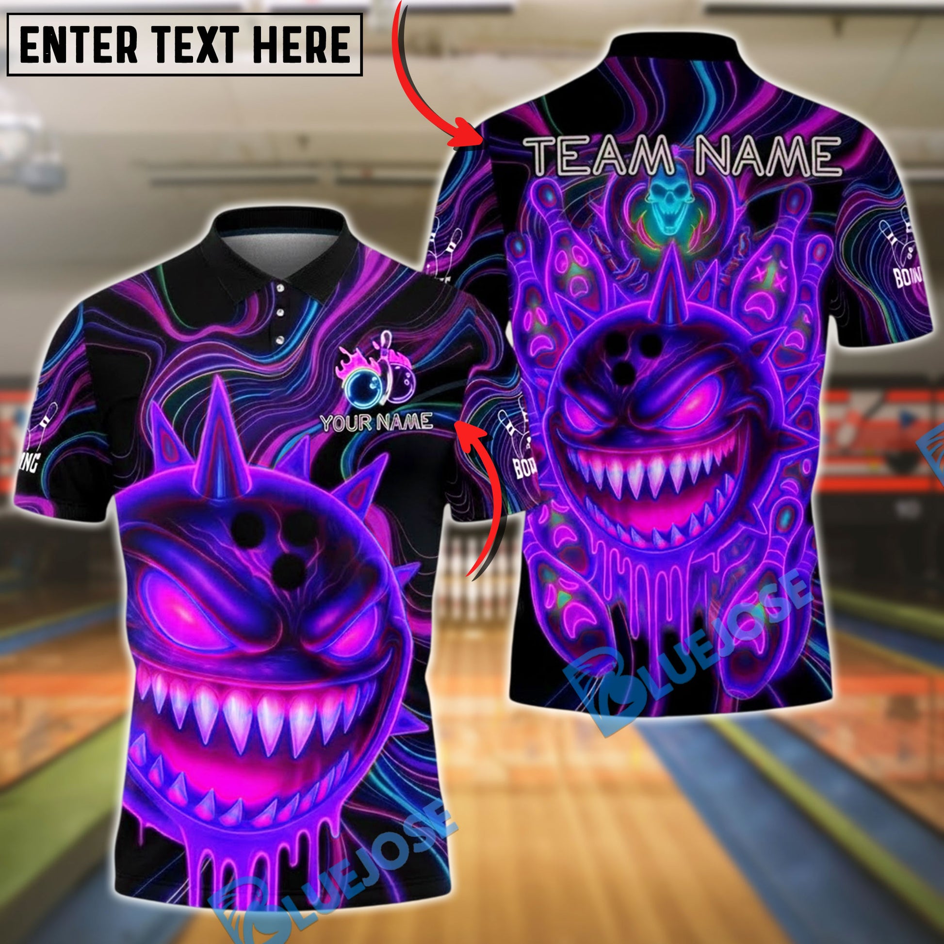 BlueJose Bowling And Pins Evil Neon Monster Customized Name, Team Name 3D Shirt (4 Colors)