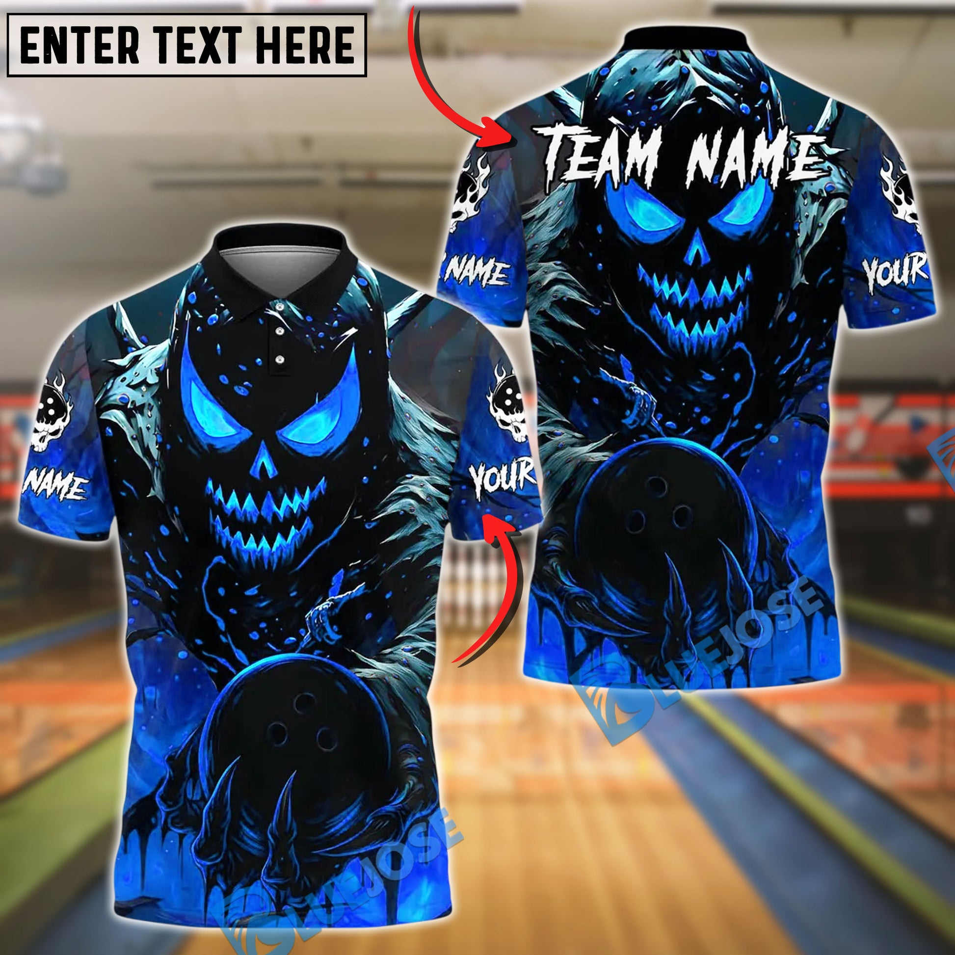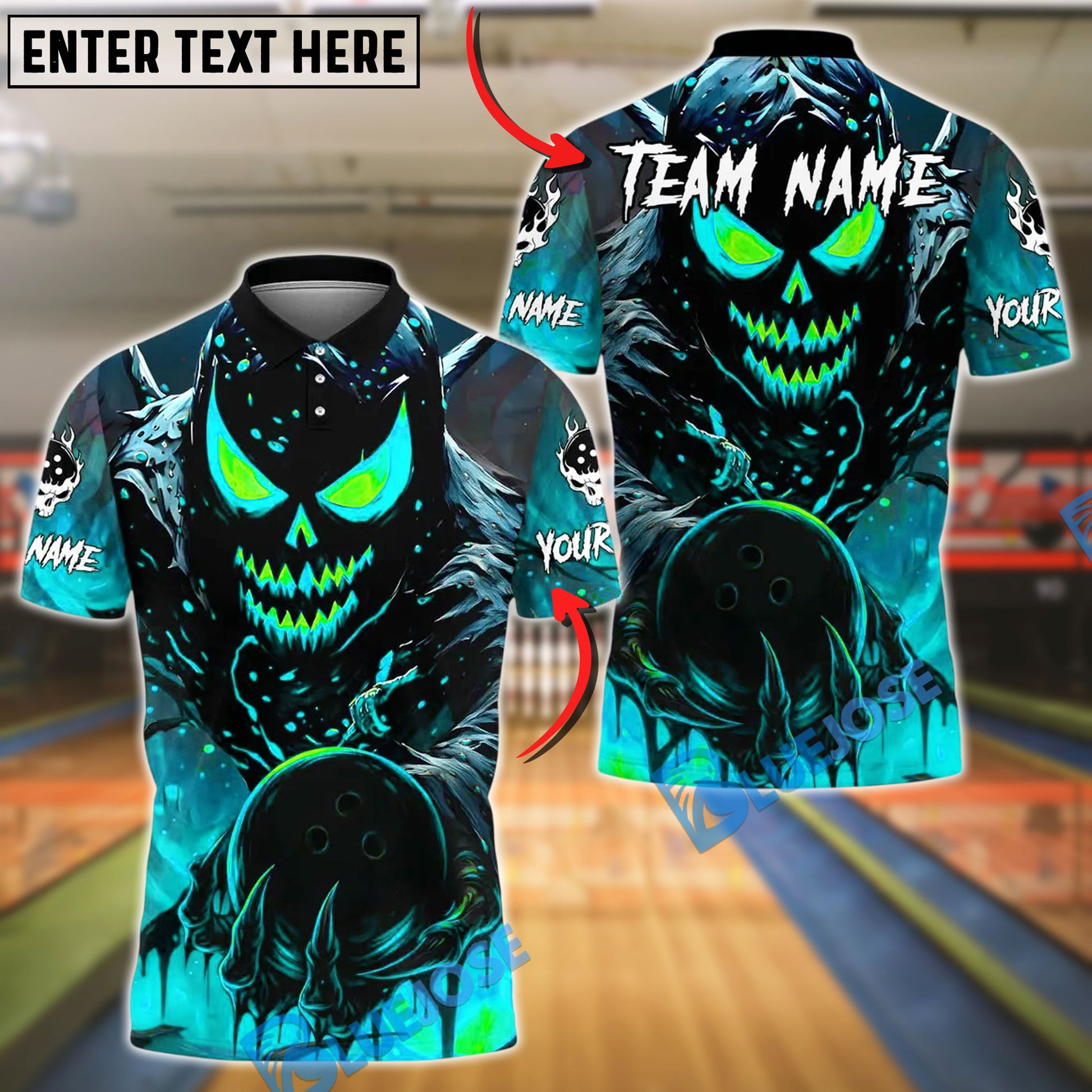 BlueJose Bowling And Pins Evil Pumpkin Demon Customized Name, Team Name 3D Shirt (4 Colors)