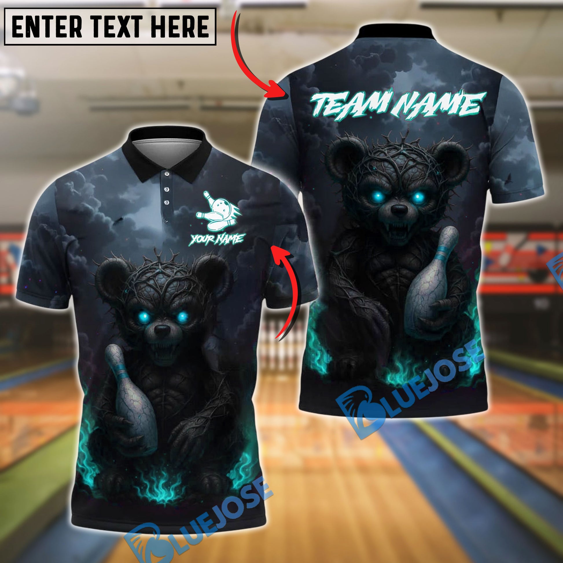 BlueJose Bowling And Pins Evil Teddy Bear with Bowling Pin Customized Name, Team Name 3D Shirt (4 Colors)