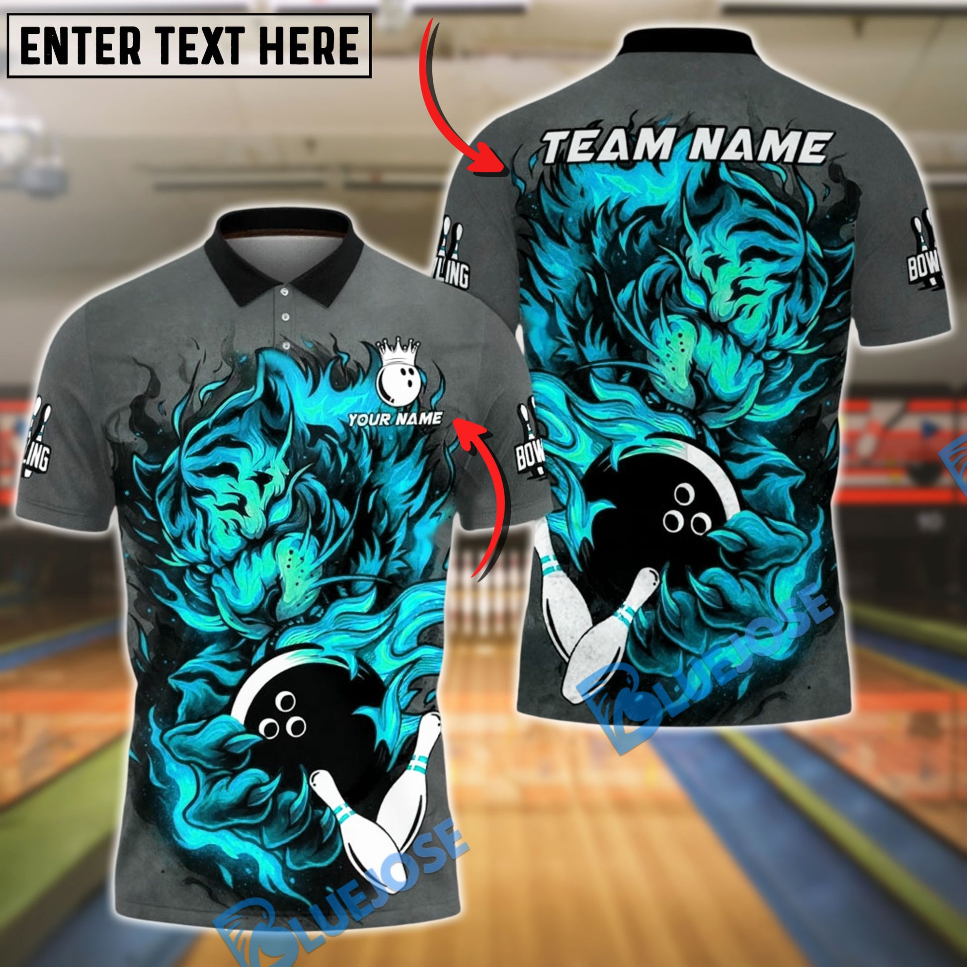 BlueJose Bowling And Pins Fiery Fire Tiger Customized Name, Team Name 3D Shirt (4 Colors)