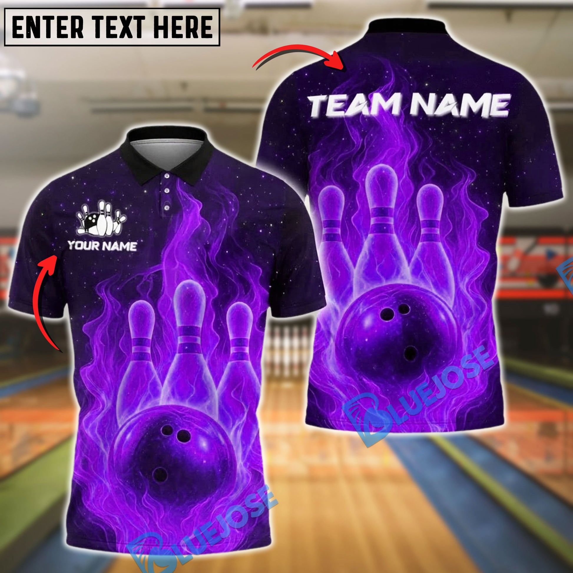 BlueJose Bowling And Pins Fire Pins & Ball Customized Name, Team Name 3D Shirt (4 Colors)