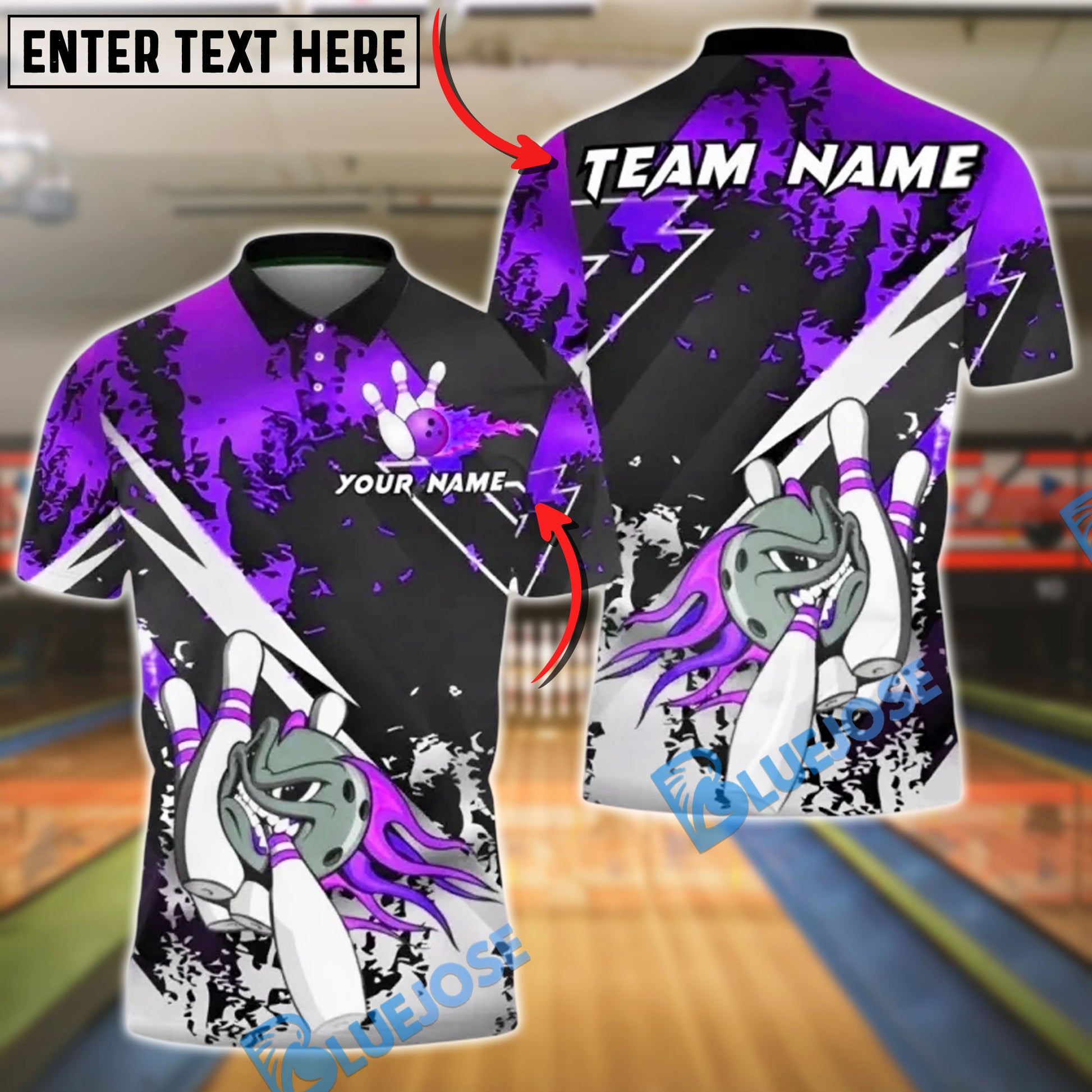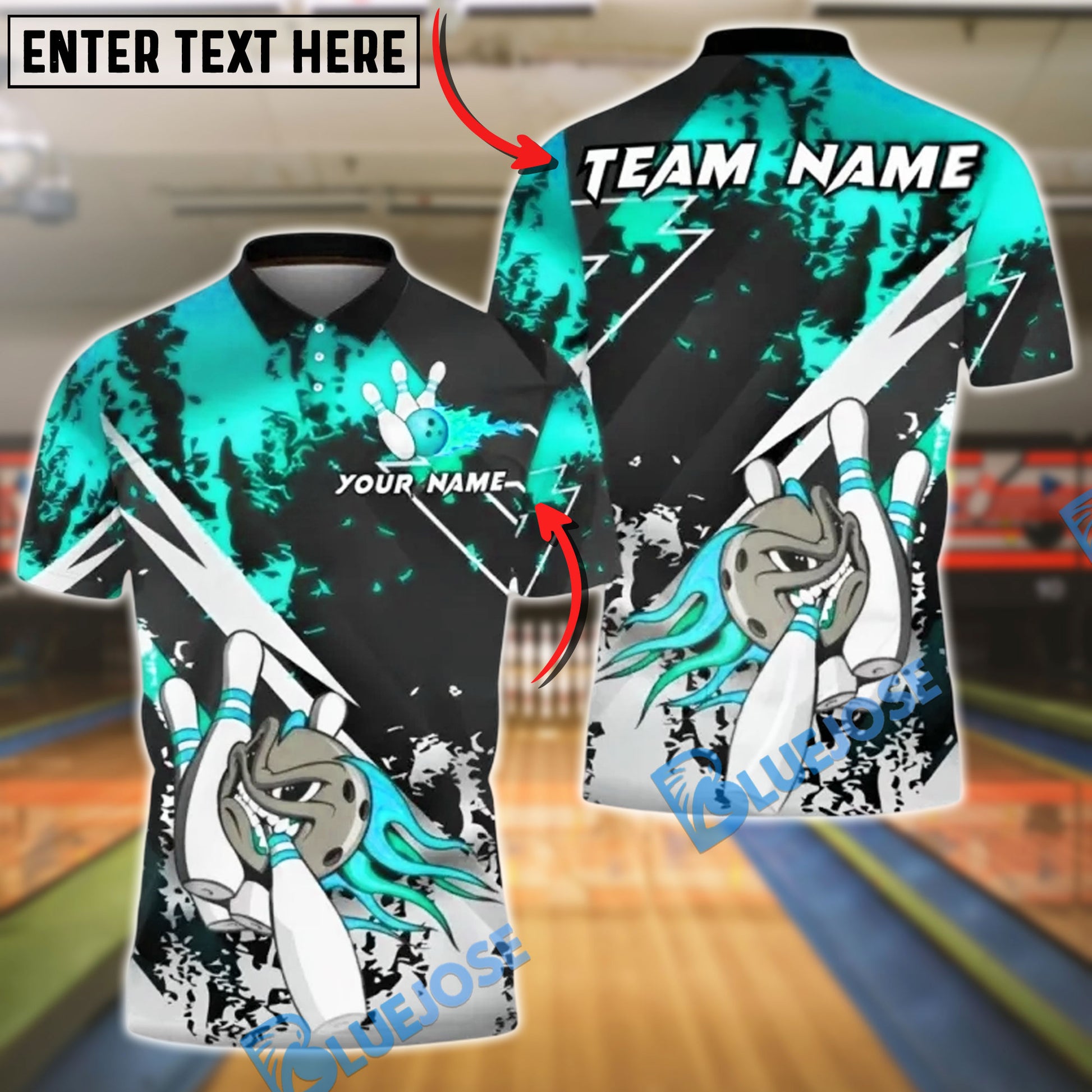 BlueJose Bowling And Pins Fire Silver Black Flame Strikes Style Customized Name, Team Name 3D Shirt (4 Colors)