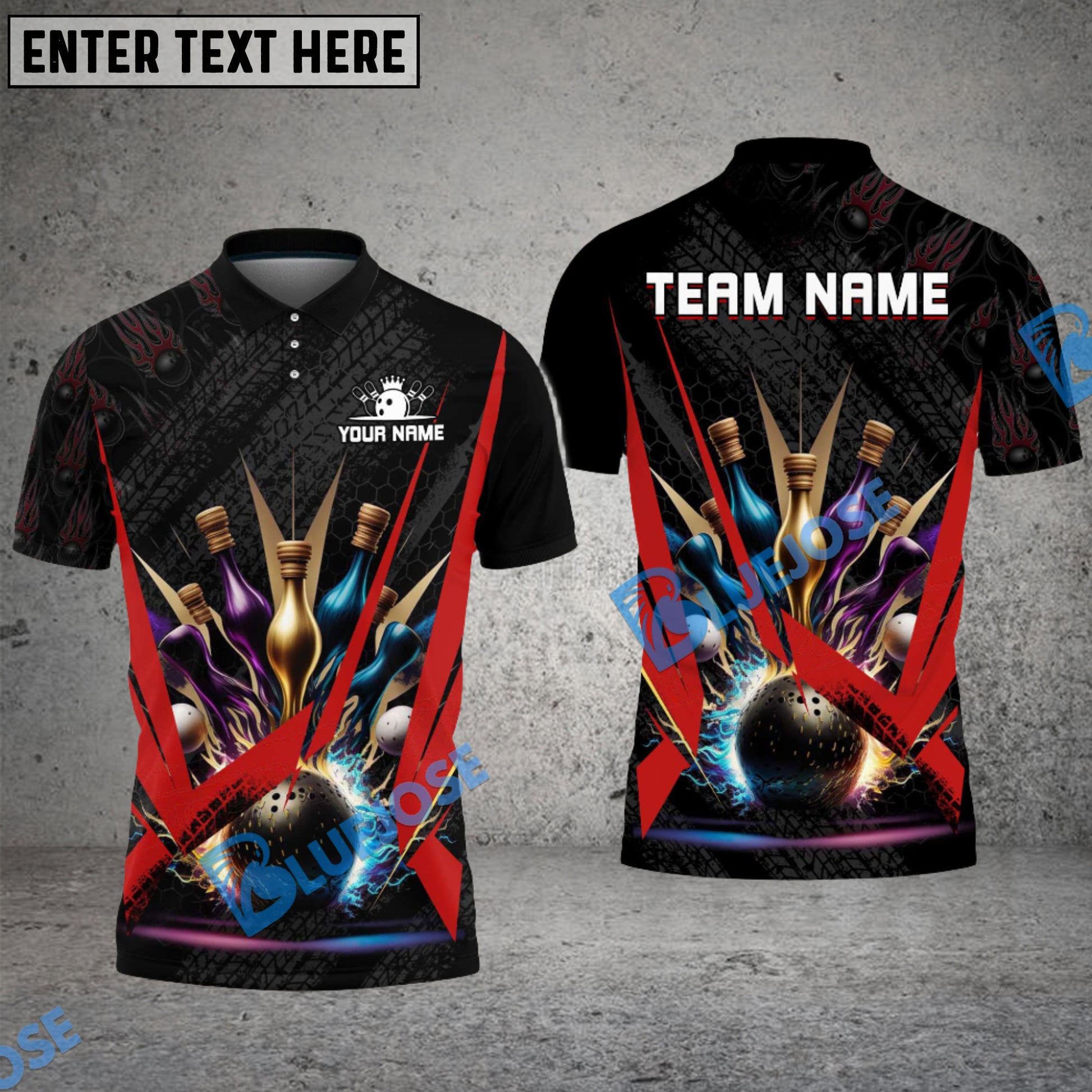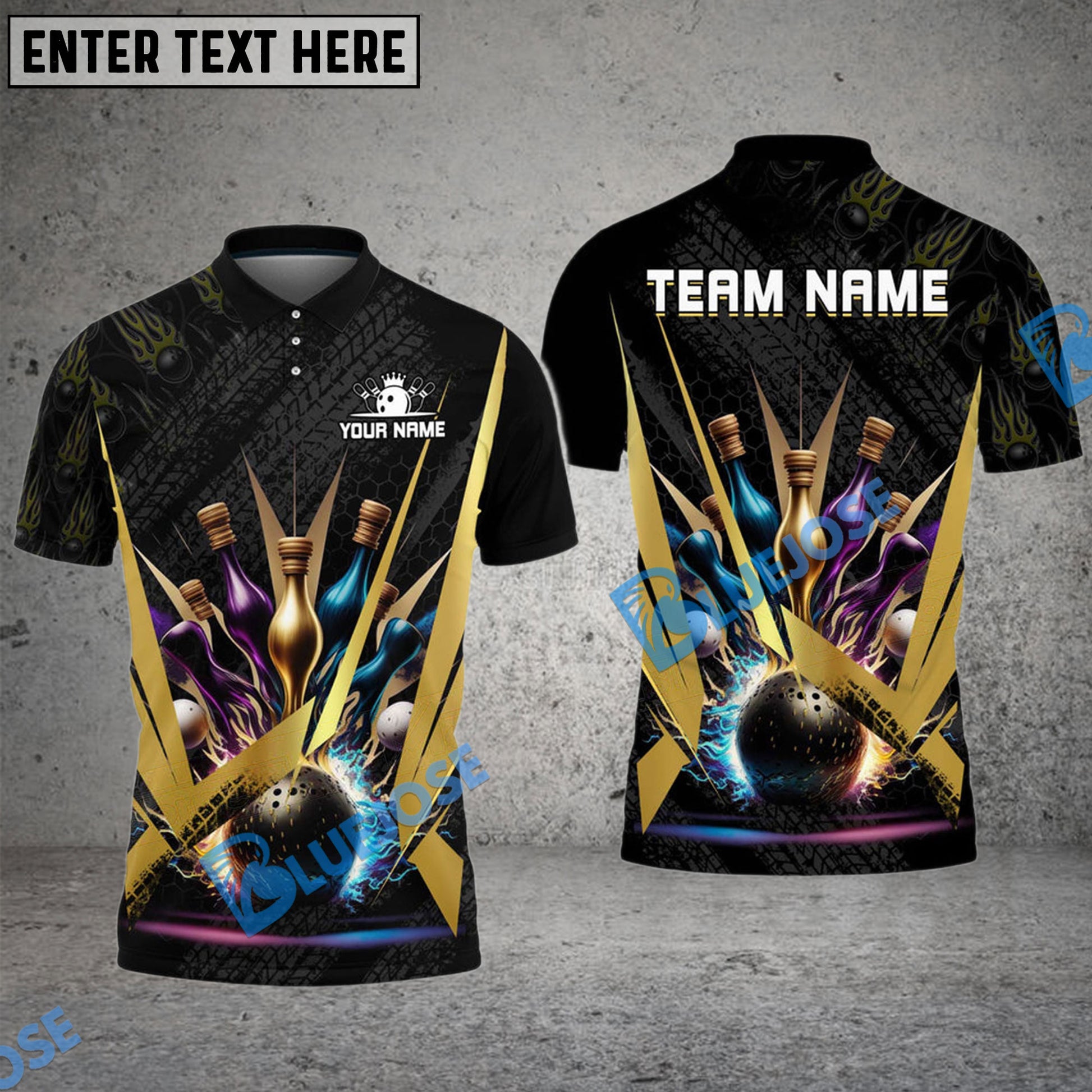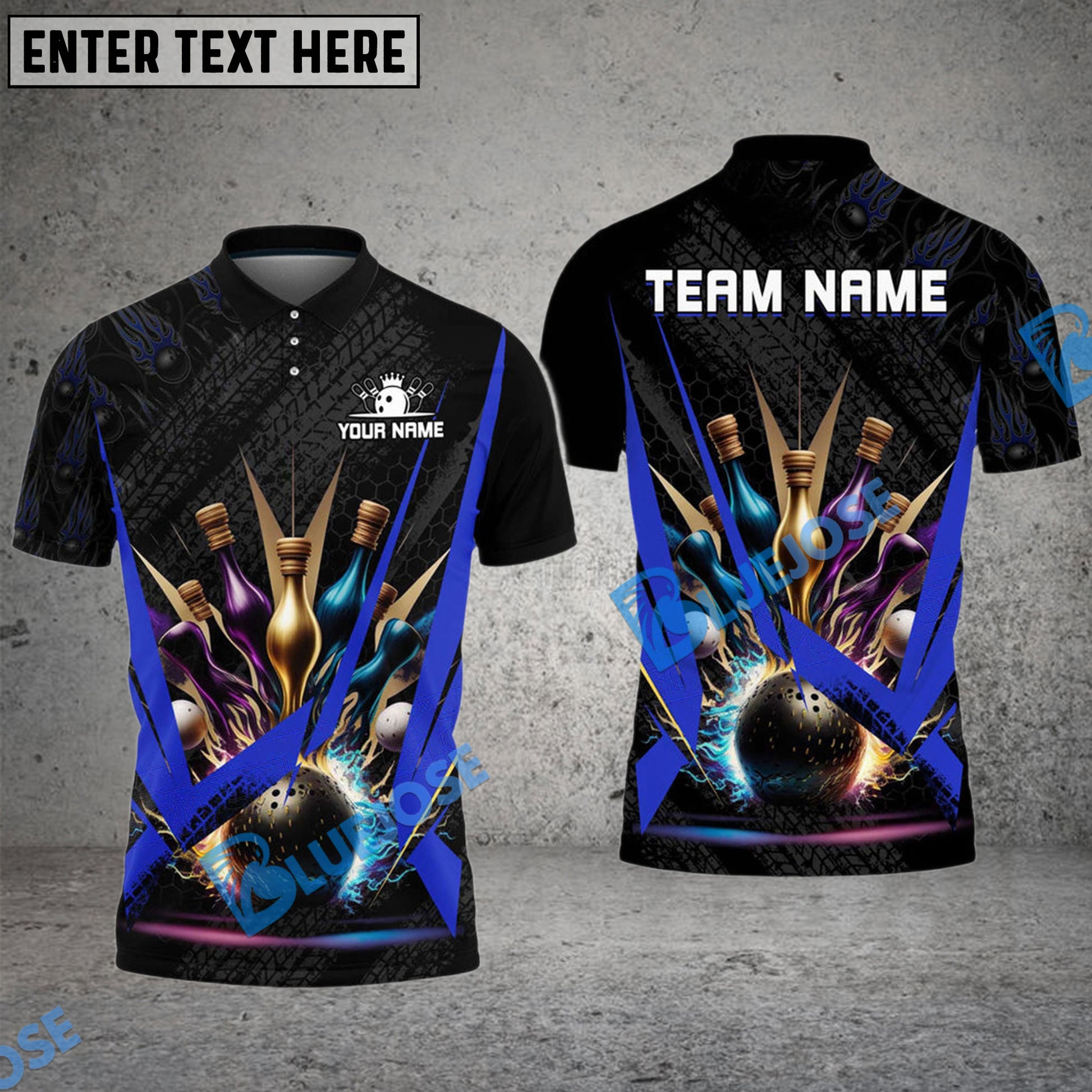 BlueJose Bowling And Pins Fire Tire Customized Name 3D Shirt (4 Colors)
